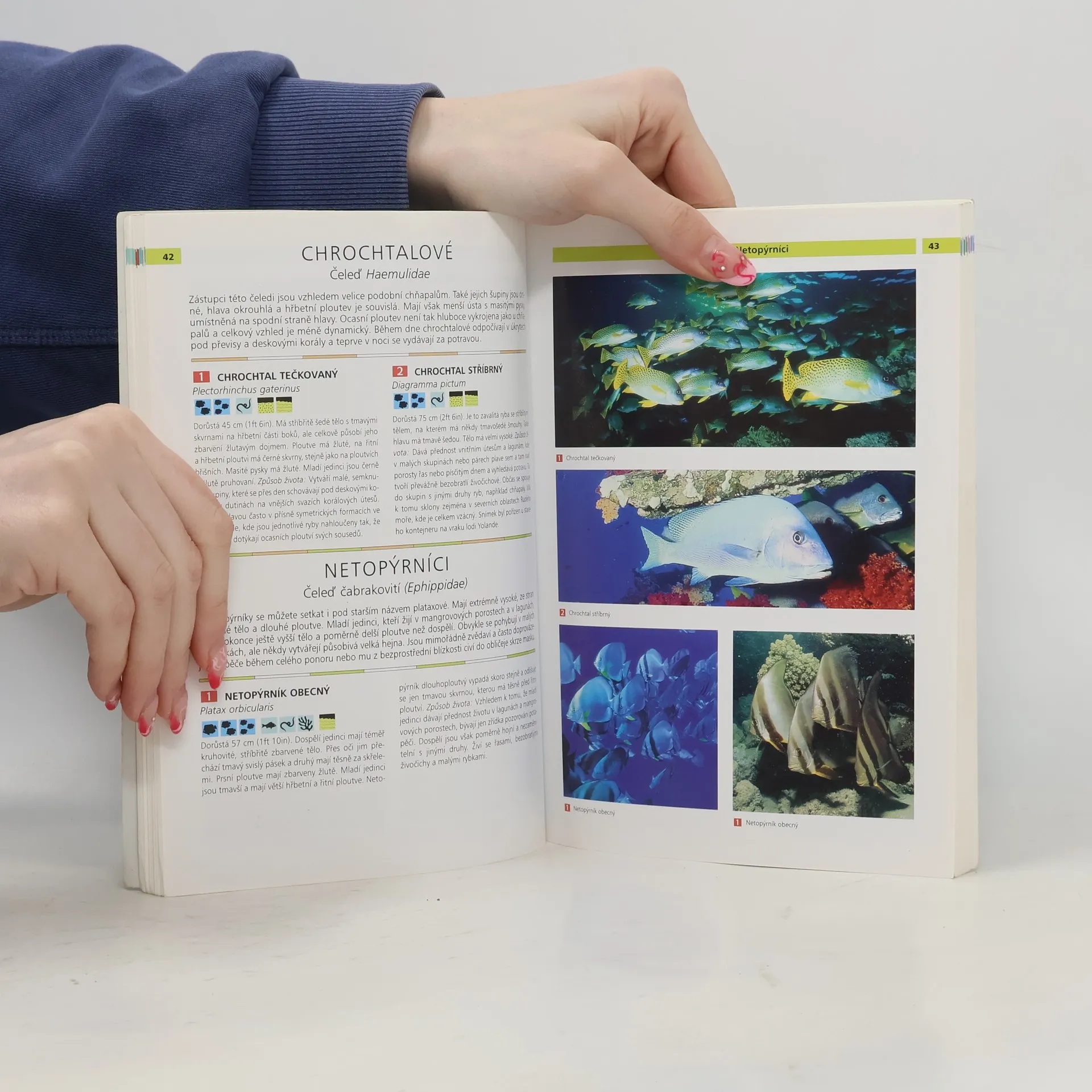 Příručka pro potápěče k určování druhů ryb a korálů v Rudém moři. Příručka v úvodu stručně informuje o ekosystému korálových útesů Rudého moře, zdůrazňuje zodpovědnost potápěčů za zachování tohoto přírodního bohatství a upozorňuje na nebezpečí, která při provozování tohoto sportu hrozí jak potápěčům, tak ekosystému korálových útesů. Převážnou část knihy pak tvoří klíč k určování ryb a korálů této oblasti. Barevné fotografie na křídovém papíře a stručné popisy jednotlivých čeledí.