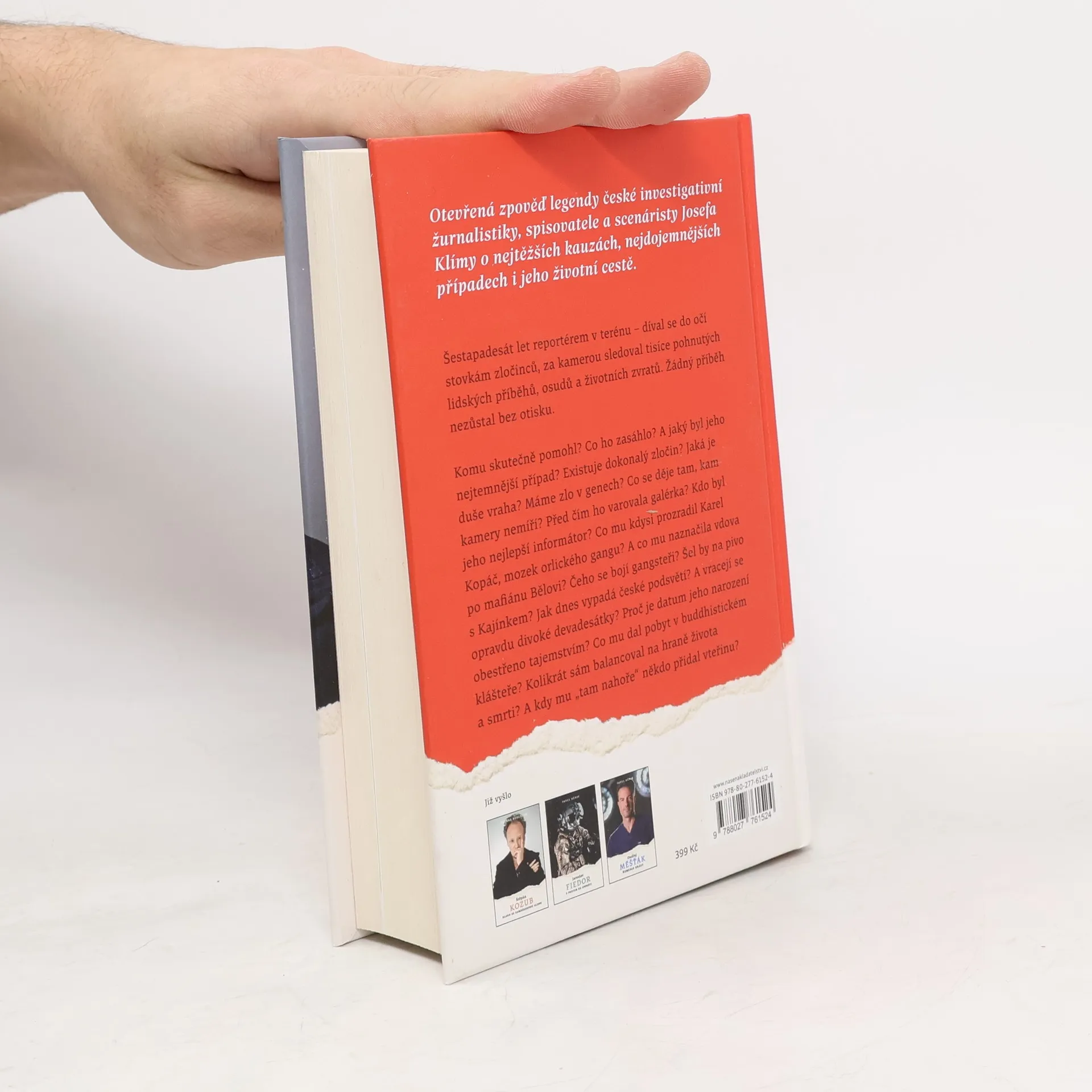 Otevřená zpověď legendy české investigativní žurnalistiky, spisovatele a scenáristy Josefa Klímy o nejtěžších kauzách, nejdojemnějších případech i jeho životní cestě. Šestapadesát let reportérem v terénu – díval se do očí stovkám zločinců, za kamerou sledoval tisíce pohnutých lidských příběhů, osudů a životních zvratů. Žádný příběh nezůstal bez otisku. Komu skutečně pomohl? Co ho zasáhlo? A jaký byl jeho nejtemnější případ? Existuje dokonalý zločin? Jaká je duše vraha? Máme zlo v genech? Co se děje tam, kam kamery nemíří? Před čím ho varovala galérka? Kdo byl jeho nejslavnější informátor? Co mu kdysi prozradil Karel Kopáč, mozek orlického gangu? A co mu naznačila vdova po mafiánovi Bělovi? Čeho se bojí gangsteři? Šel by na pivo s Kajínkem? Jak dnes vypadá české podsvětí? A vracejí se opravdu divoké devadesátky? Proč je datum jeho narození obestřeno tajemstvím? Co mu dal pobyt v budhistickém klášteře? Kolikrát sám balancoval na hraně života a smrti? A kdy mu „tam nahoře“ někdo přidal vteřinu?