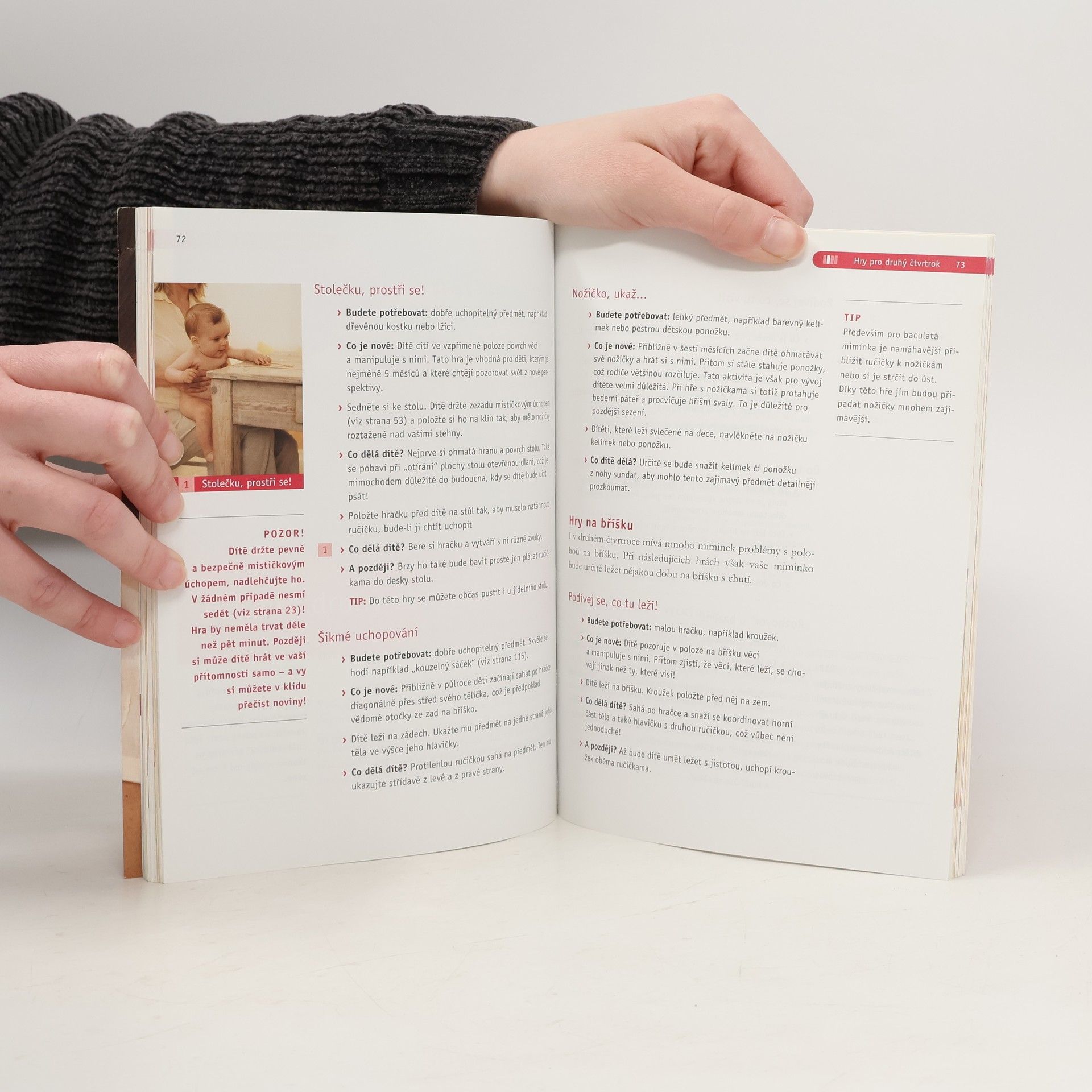 Program cvičení rodičů s dětmi do jednoho roku. Děti potřebují lásku, něhu a vhodné podněty, aby se mohly optimálním způsobem rozvíjet. Přinášíme vám program cvičení rodičů s dětmi, který můžete snadno realizovat doma. Všechna cvičení podporují aktivitu vašeho děťátka a zprostředkovávají mu pocit: „Už to dokážu sám!“. Nejkrásnější hry: V této knize najdete více než stovku nekrásnějších her a pohybových aktivit, kterým se můžete se svou ratolestí věnovat doma. S dítětem si tedy můžete začít hrát hned po narození. Získáte tak nezapomenutelné zážitky. Hračky: Zjistíte, jak lze velmi rychle a jednoduše vyrobit krásné a podnětné hračky.