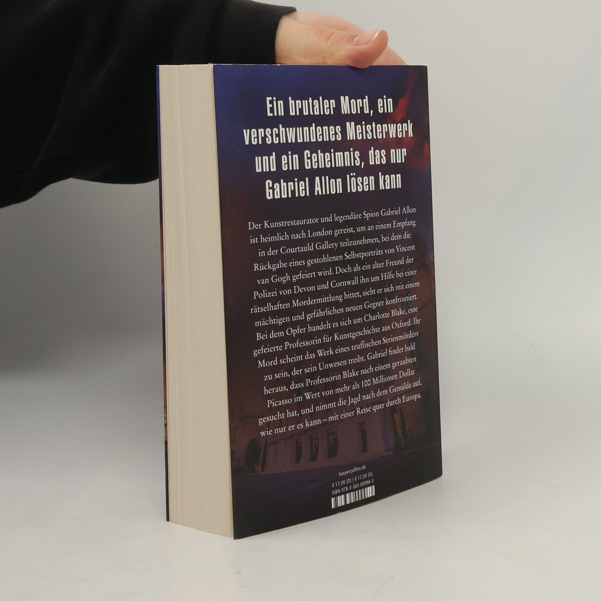 Ein brutaler Mord, ein verschwundenes Meisterwerk und ein Geheimnis, das nur Gabriel Allon lösen kann Der Kunstrestaurator und legendäre Spion Gabriel Allon ist heimlich nach London gereist, um an einem Empfang in der Courtauld Gallery teilzunehmen, bei dem die Rückgabe eines gestohlenen Selbstporträts von Vincent van Gogh gefeiert wird. Doch als ein alter Freund der Polizei von Devon und Cornwall ihn um Hilfe bei einer rätselhaften Mordermittlung bittet, sieht er sich mit einem mächtigen und gefährlichen neuen Gegner konfrontiert. Bei dem Opfer handelt es sich um Charlotte Blake, eine gefeierte Professorin für Kunstgeschichte aus Oxford. Ihr Mord scheint das Werk eines teuflischen Serienmörders zu sein, der sein Unwesen treibt. Gabriel findet bald heraus, dass Professor Blake nach einem geraubten Picasso im Wert von mehr als 100 Millionen Dollar gesucht hat, und nimmt die Jagd nach dem Gemälde auf, wie nur er es kann – mit einer Reise quer durch Europa. Eine schillernde Geschichte über Mord, Macht und unersättliche Gier, die den Leser bis zur letzten Seite in ihren Bann zieht