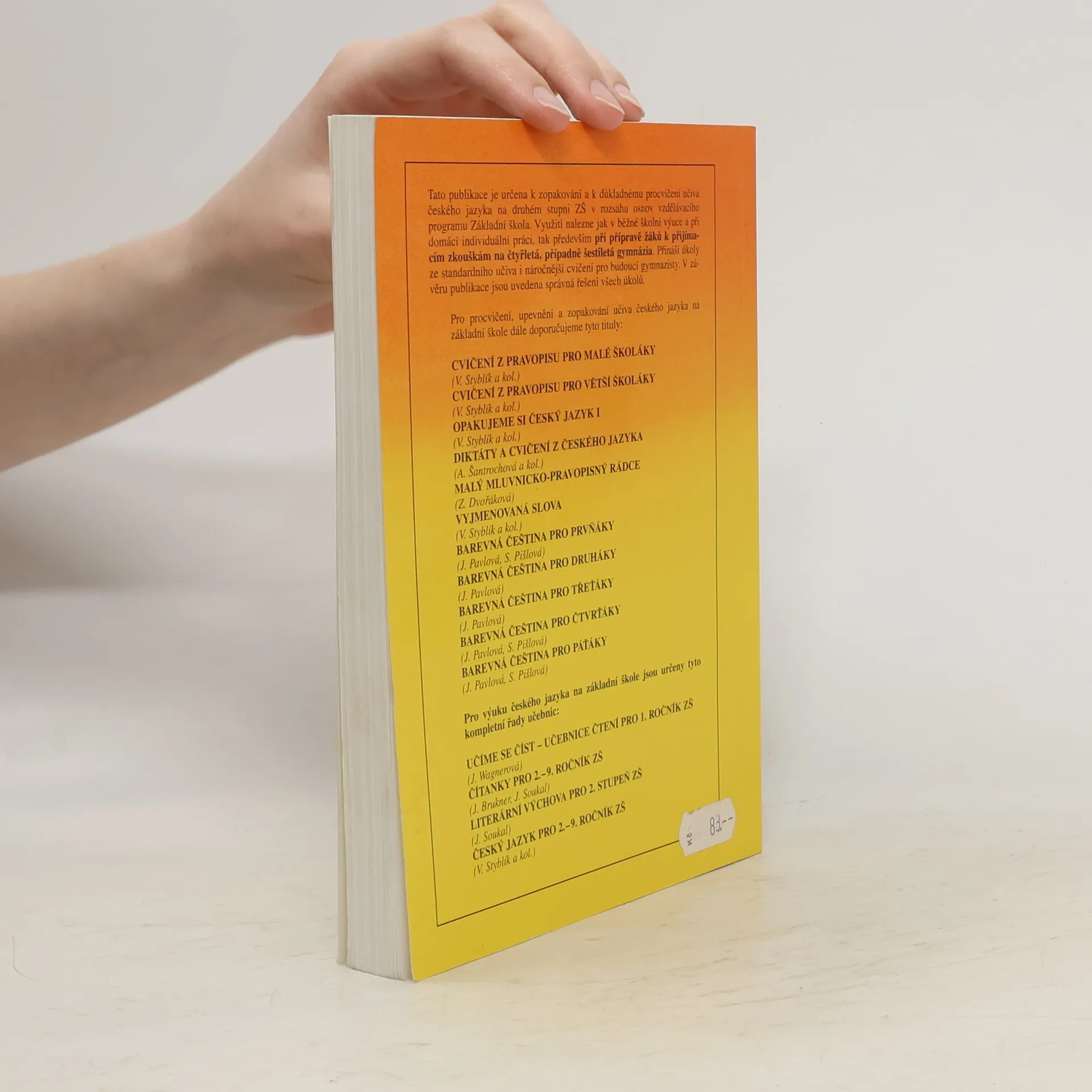 Tato publikace je určena k zopakování a důkladnému procvičení učiva českého jazyka na druhém stupni ZŠ. (sbírka cvičení pro žáky 2. stupně základní školy: všestranná kvalitní příprava k přijímacím zkouškám na čtyřletá gymnázia).