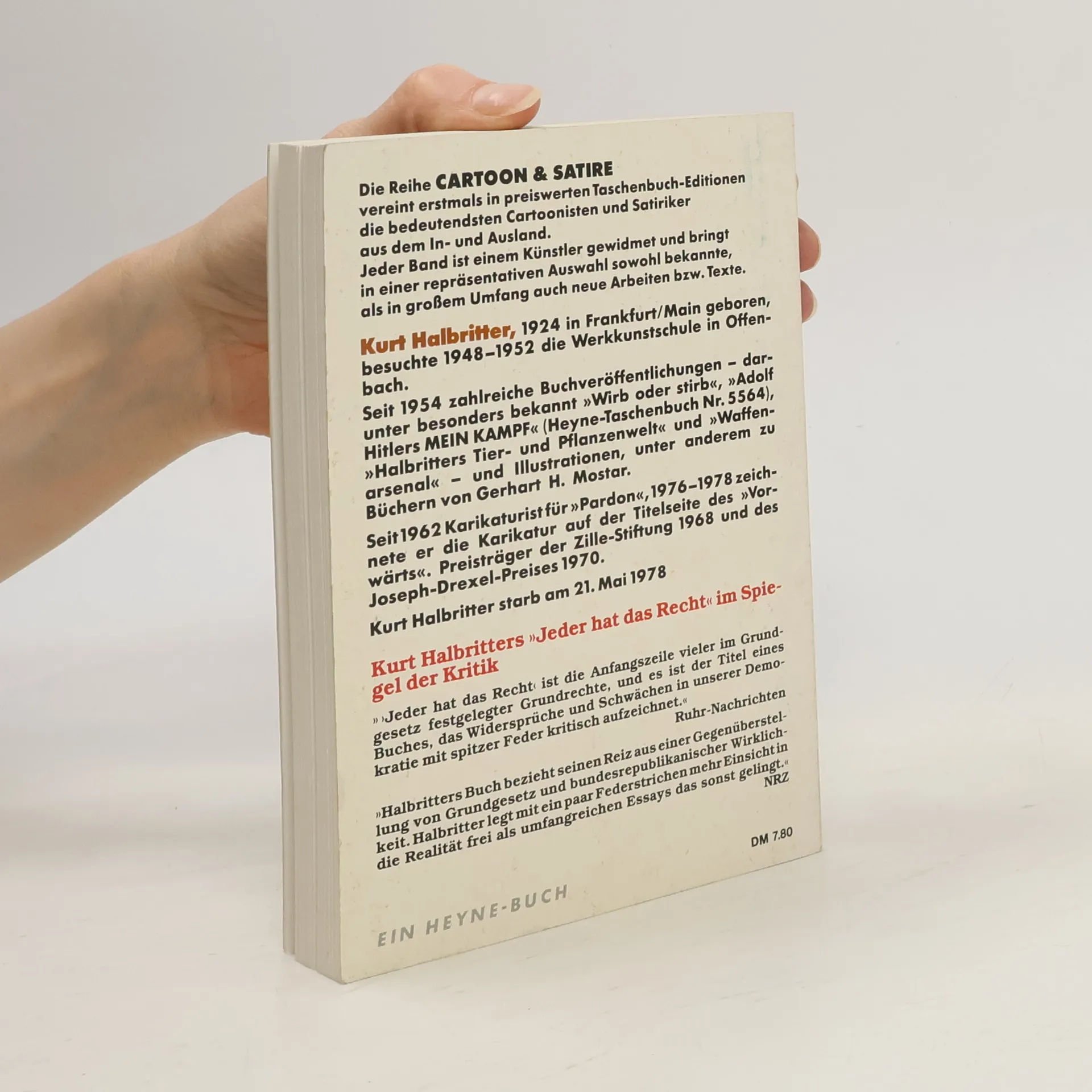 »Jeder hat das Recht«, heißt es im Grundgesetz. Und viele nehmen es sich, um ihr eigenes Süppchen damit zu kochen; oder um die »freiheitlich-demokratische Grundordnung« mit »Ruhe und Ordnung« zu verwechseln. In über 200 ebenso komischen wie bissigen Zeichnungen zeigt Kurt Halbritter, wie das Grundgesetz sich zur Verfassungswirklichkeit verhält – Cartoons, intellektuell und volkstümlich, angesiedelt zwischen Lachen und Weinen.