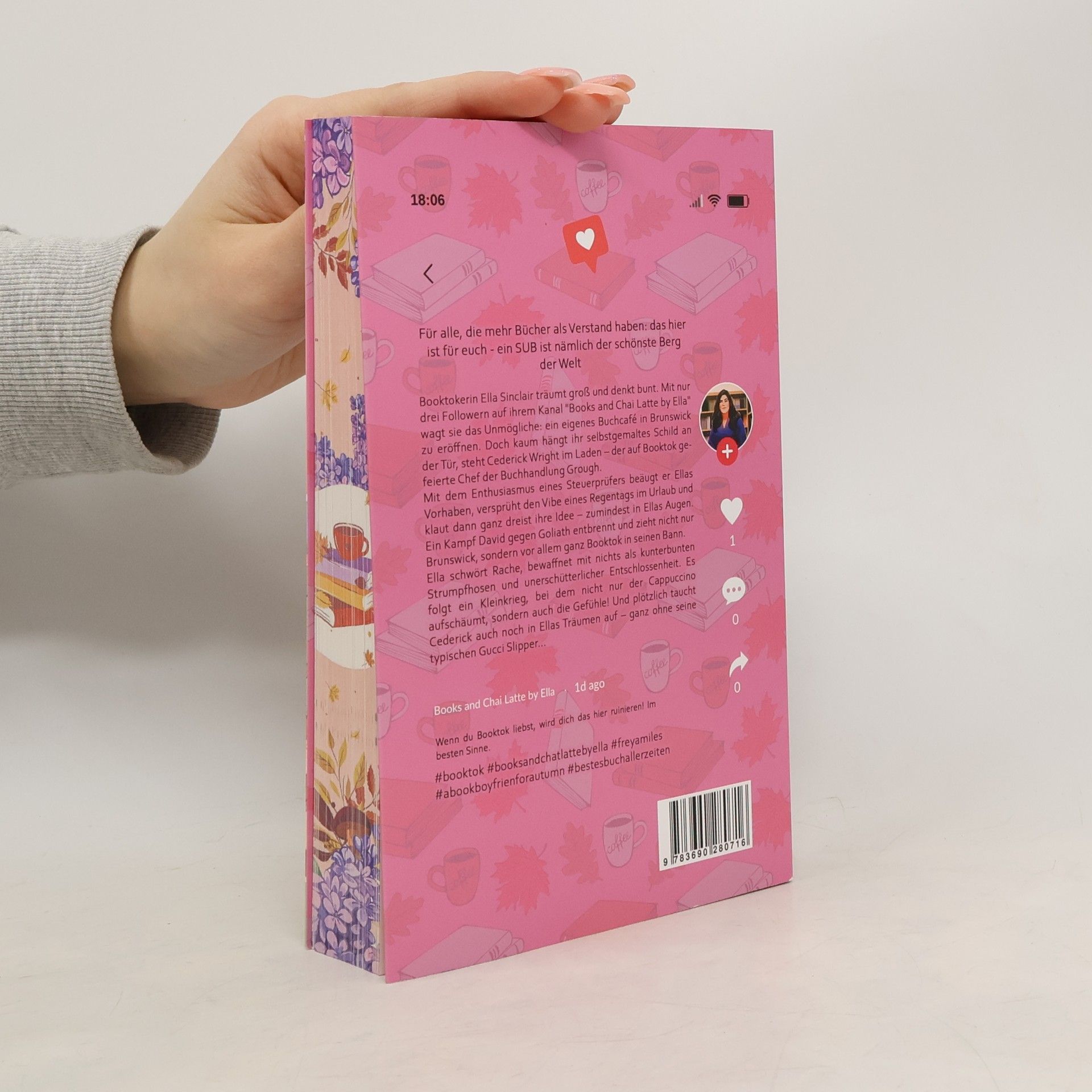 Für alle, die mehr Bücher als Verstand haben: das hier ist für euch - ein SUB ist nämlich der schönste Berg der Welt ! Booktokerin Ella Sinclair träumt groß und denkt bunt. Mit nur drei Followern auf ihrem Kanal "Books and Chai Latte by Ella" wagt sie das Unmögliche: ein eigenes Buchcafé in Brunswick zu eröffnen. Doch kaum hängt ihr selbstgemaltes Schild an der Tür, steht Cederick Wright im Laden – der auf Booktok gefeierte Chef der Buchhandlung Grough. Mit dem Enthusiasmus eines Steuerprüfers beäugt er Ellas Vorhaben, versprüht den Vibe eines Regentags im Urlaub und klaut dann ganz dreist ihre Idee – zumindest in Ellas Augen. Ein Kampf David gegen Goliath entbrennt und zieht nicht nur Brunswick, sondern vor allem ganz Booktok in seinen Bann. Ella schwört Rache, bewaffnet mit nichts als kunterbunten Strumpfhosen und unerschütterlicher Entschlossenheit. Es folgt ein Kleinkrieg, bei dem nicht nur der Cappuccino aufschäumt, sondern auch die Gefühle! Und plötzlich taucht Cederick auch noch in Ellas Träumen auf – ganz ohne seine typischen Gucci Slipper... Wenn du Booktok liebst, wird dich das hier ruinieren! Im besten Sinne.