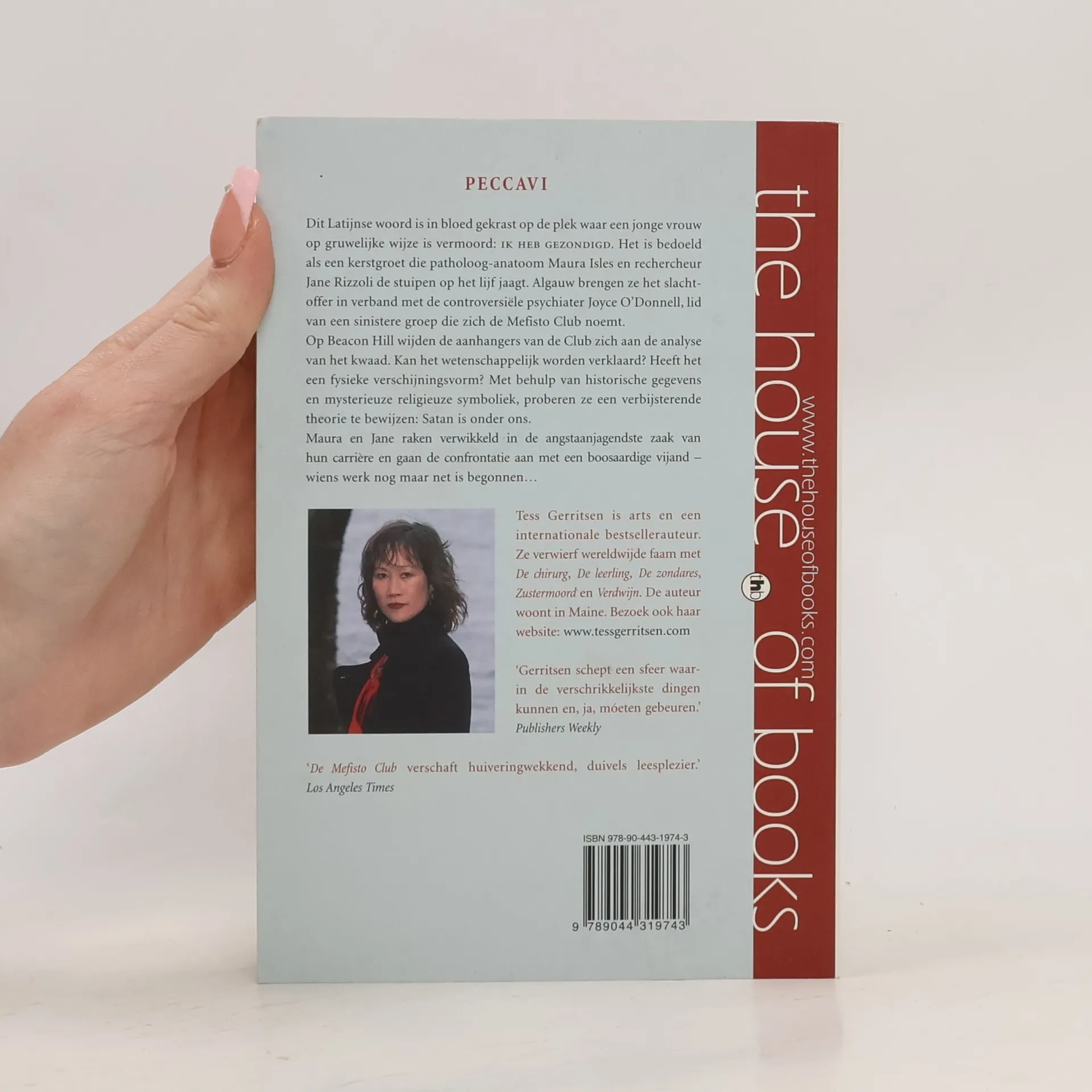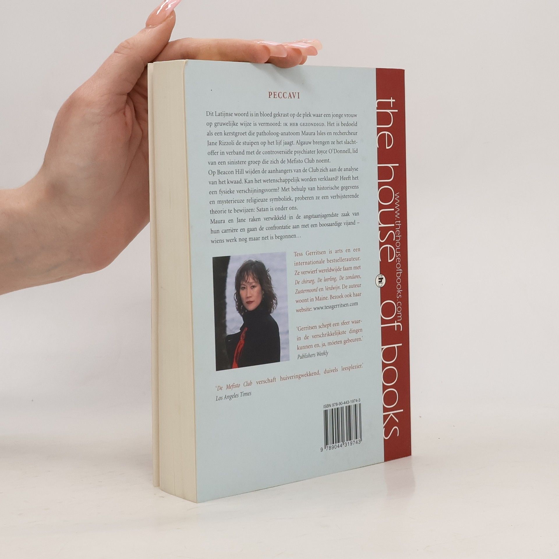 PECCAVI Dit Latijnse woord is in bloed gekrast op de plek waar een jonge vrouw op gruwelijke wijze is vermoord: Ik heb gezondigd. Het is bedoeld als kerstgroet die patholoog-anatoom Maura Isles en rechercheur Jane Rizzoli de stuipen op het lijf jaagt. Algauw brengen ze het slachtoffer in verband met de controversiële psychiater Joyce O'Donnell, lid van een sinistere groep die zich de Mefisto Club noemt. Op Beacon Hill wijden de aanhangers van de Mefisto Club zich aan de analyse van het kwaad. Kan het wetenschappelijk worden verklaard? Heeft het een fysieke verschijningsvorm? Met behulp van historische gegevens en mysterieuze religieuze symboliek, proberen ze een verbijsterende theorie te bewijzen: Satan is onder ons. Maura en Jane raken verwikkeld in de angstaanjagendste zaak van hun carrière en gaan de confrontatie aan met een boosaardige vijand - wiens werk nog maar net is begonnen...