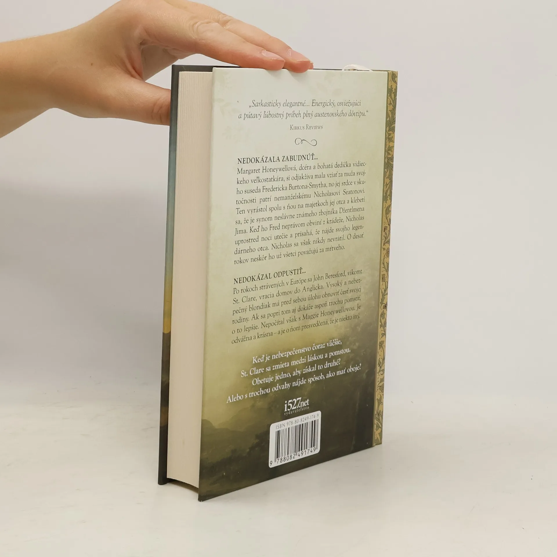 Nedokázala zabudnúť...Margaret Honeywellová, dcéra a bohatá dedička vidieckeho veľkostatkára, si odjakživa mala vziať za muža svojho suseda Fredericka Burtona-Smytha, no jej srdce v skutočnosti patrí nemanželskému Nicholasovi Seatonovi. Ten vyrástol spolu s ňou na majetkoch jej otca a klebetí sa, že je synom neslávne známeho zbojníka Džentlmena Jima. Keď ho Fred neprávom obviní z krádeže, Nicholas uprostred noci utečie a prisahá, že nájde svojho legendárneho otca. Nicholas sa však nikdy nevrátil. O desať rokov neskôr ho všetci dávno považujú za mŕtveho. Nedokázal odpustiť...Po rokoch strávených v Európe sa John Beresford, vikomt St. Clare, vracia domov do Anglicka. Vysoký a nebezpečný blondiak má pred sebou úlohu obnoviť česť svojej rodiny. Ak sa popri tom dokáže aj aspoň trochu pomstiť, o to lepšie. Nepočítal však s Maggie Honeywellovou. Je odvážna a krásna – a je o ňom presvedčená, že je niekto iný. Keď je nebezpečenstvo čoraz väčšie, St. Clare sa zmieta medzi láskou a pomstou. Obetuje jedno, aby získal to druhé? Alebo s trochou odvahy nájde spôsob, ako mať oboje?