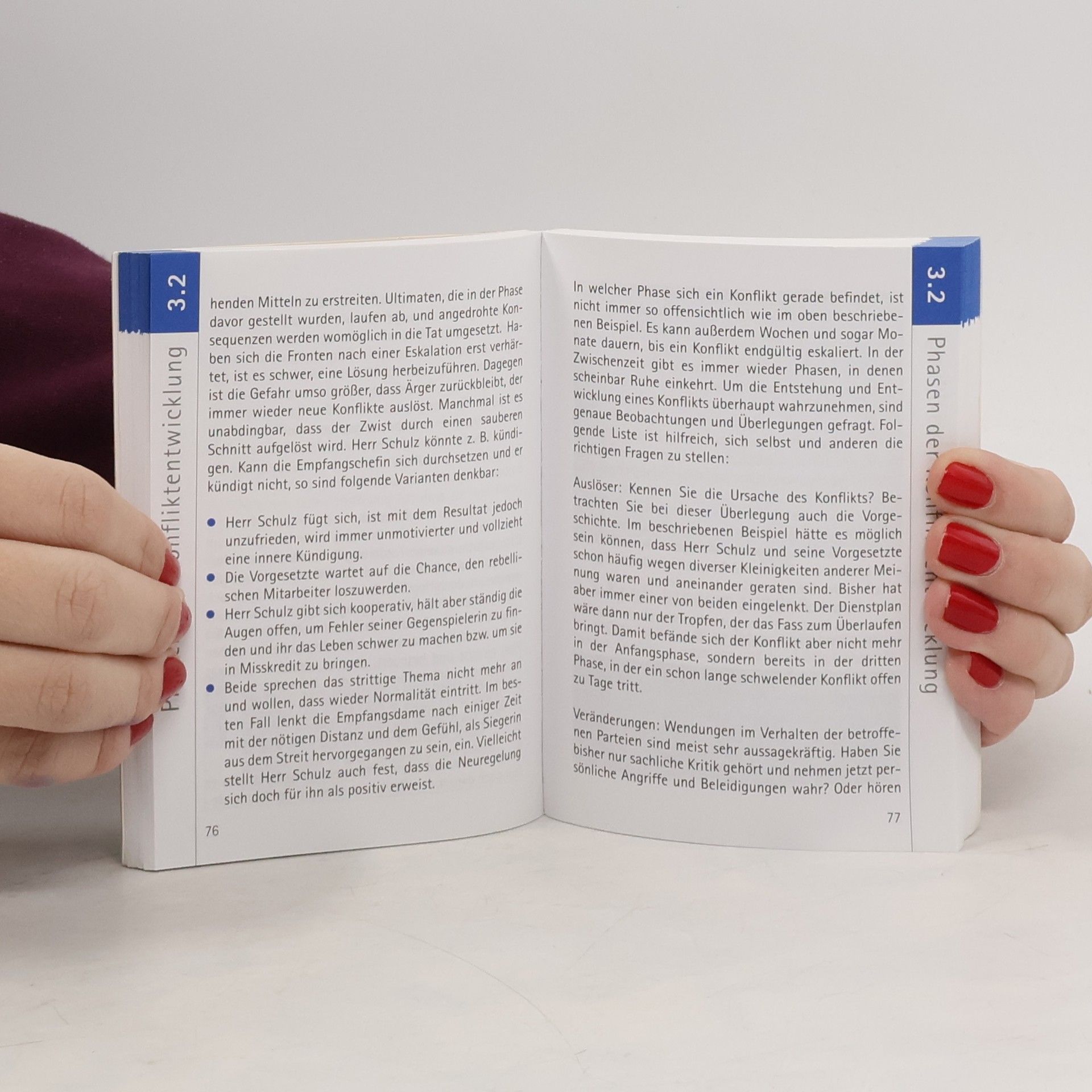 Konflikte am Arbeitsplatz frühzeitig zu erkennen und zu lösen bzw. von vornherein zu vermeiden, ist eine wichtige Aufgabe von Führungskräften. Die oft unterschwelligen Spannungen unter Mitarbeitern müssen abgebaut werden, bevor sie die inhaltliche Arbeit und Arbeitsmotivation beeinträchtigen und somit das Unternehmen Zeit und Geld kosten. Dazu ist es nötig zu wissen, wie Konflikte entstehen, wie man Konflikte vermeidet und wie man bereits aufgekommene Konflikte erkennt, analysiert und steuert und schließlich wie man Konflikte löst. Dazu bietet der Büro-Spicker Konfliktlösungen an konkreten Beispielen.