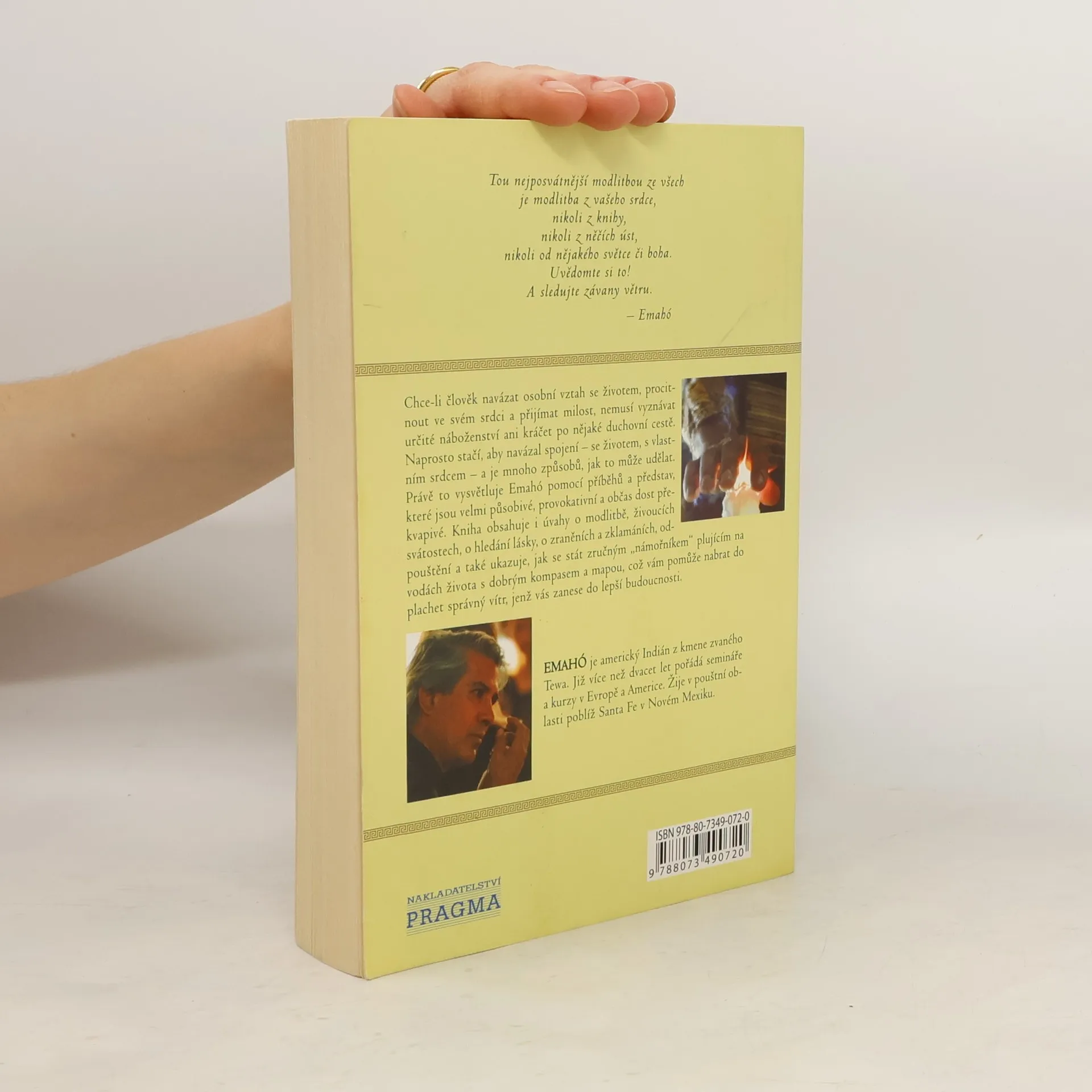 Emahó nepíše knihy, Emahó promlouvá k těm, kteří se zamýšlejí nad svým životem. Ukazuje jim, jak důležité je navázání osobního vztahu s vlastním životem, se srdcem. Pomocí příběhů a symbolů odhaluje tajemství jiných světů, které většina lidí nevidí a nechápe. Vysvětluje význam radosti a štěstí, zranění a zklamání, modliteb a svátostí a také připravuje na odchod z tohoto světa do říše ducha. Emahó pomáhá lidem nejen psaným slovem, které zasahuje hlubiny nitra, ale také osobně při seminářích a kurzech, na nichž už více než dvacet let přednáší a provádí obřad ohňového tance. Jeho učení si nachází mnoho příznivců ve Spojených státech, v Evropě a také v naší zemi, kterou Emahó nedávno navštívil.