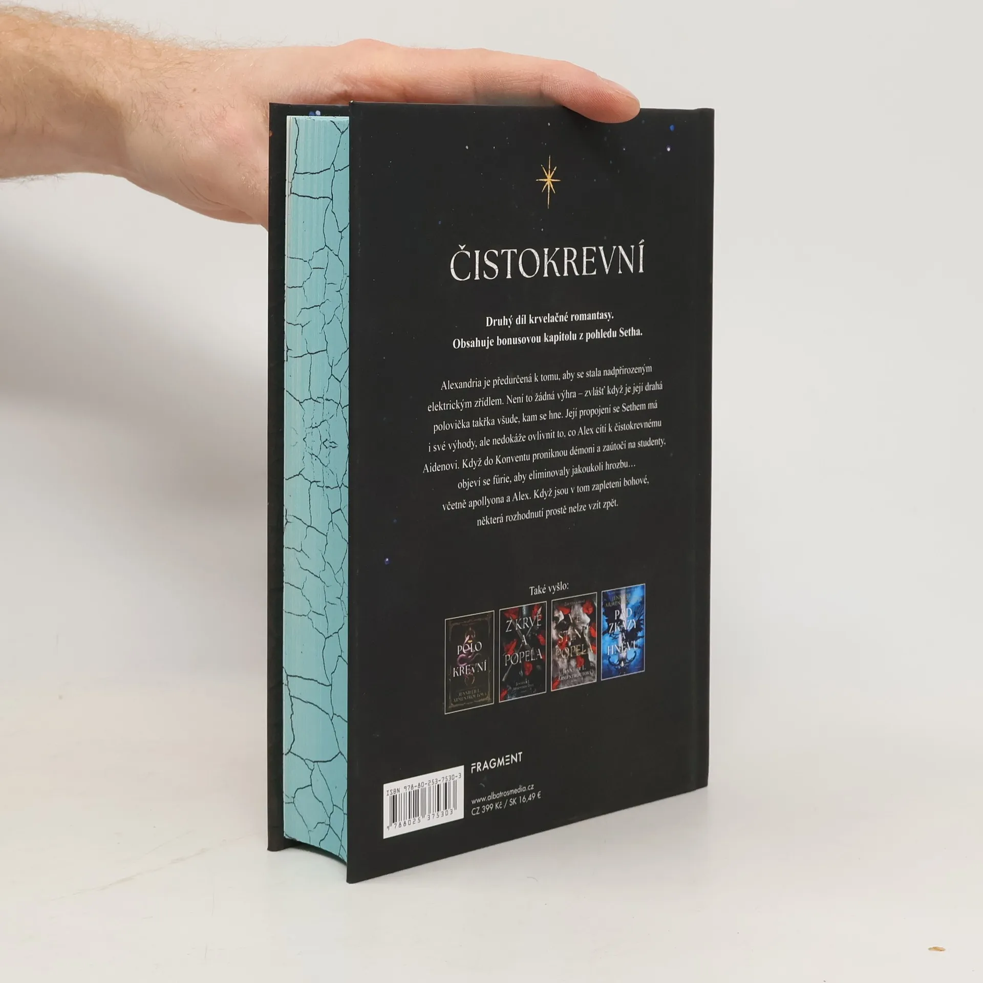 Druhý díl krvelačné romantasy. Obsahuje bonusovou kapitolu z pohledu Setha. Alexandria je předurčená k tomu, aby se stala nadpřirozeným elektrickým zřídlem. Není to žádná výhra – zvlášť když je její drahá polovička takřka všude, kam se hne. Její propojení se Sethem má i své výhody, ale nedokáže ovlivnit to, co Alex cítí k čistokrevnému Aidenovi. Když do Konventu proniknou démoni a zaútočí na studenty, objeví se fúrie, aby eliminovaly jakoukoli hrozbu… včetně apollyona a Alex. Když jsou v tom zapleteni bohové, některá rozhodnutí prostě nelze vzít zpět.