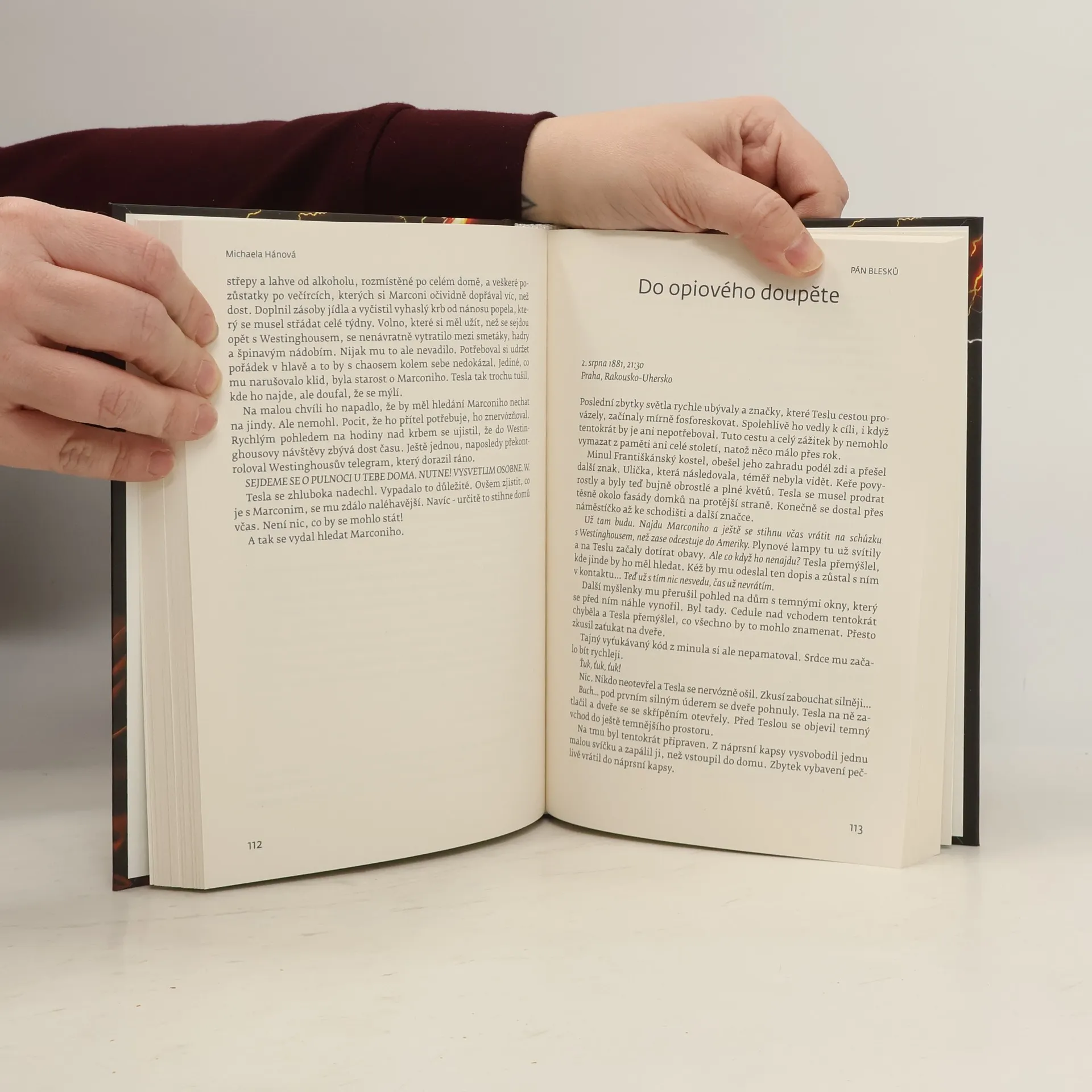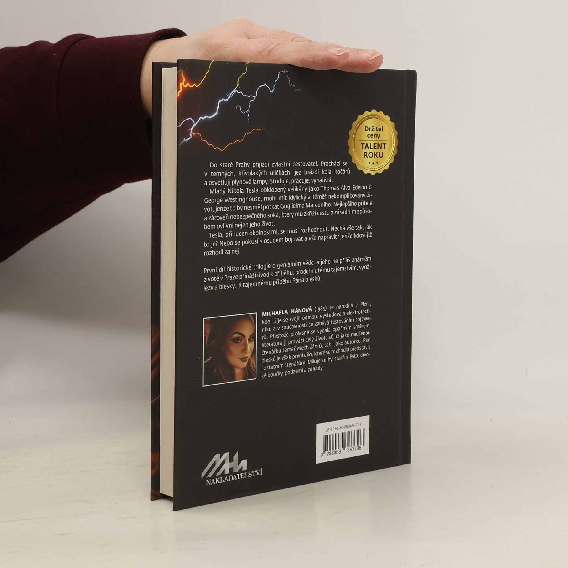 Do staré Prahy přijíždí zvláštní cestovatel. Prochází se v temných, křivolakých uličkách, jež brázdí kola kočárů a osvětlují plynové lampy. Studuje, pracuje, vynalézá. Mladý Nikola Tesla obklopený velikány jako Thomas Alva Edison či George Westinghouse mohl mít idylický a téměř nekomplikovaný život, jenže to by nesměl potkat Guglielma Marconiho. Nejlepšího přítele a zároveň nebezpečného soka, který mu zkříží cestu a zásadním způsobem ovlivní nejen jeho život. Tesla, přinucen okolnostmi, se musí rozhodnout. Nechá vše tak, jak to je? Nebo se pokusí s osudem bojovat a vše napravit? Jenže kdosi již rozhodl za něj. První díl historické trilogie o geniálním vědci a jeho ne příliš známém životě v Praze přináší úvod k příběhu, prodchnutému tajemstvím, vynálezy a blesky. K tajemnému příběhu Pána blesků.