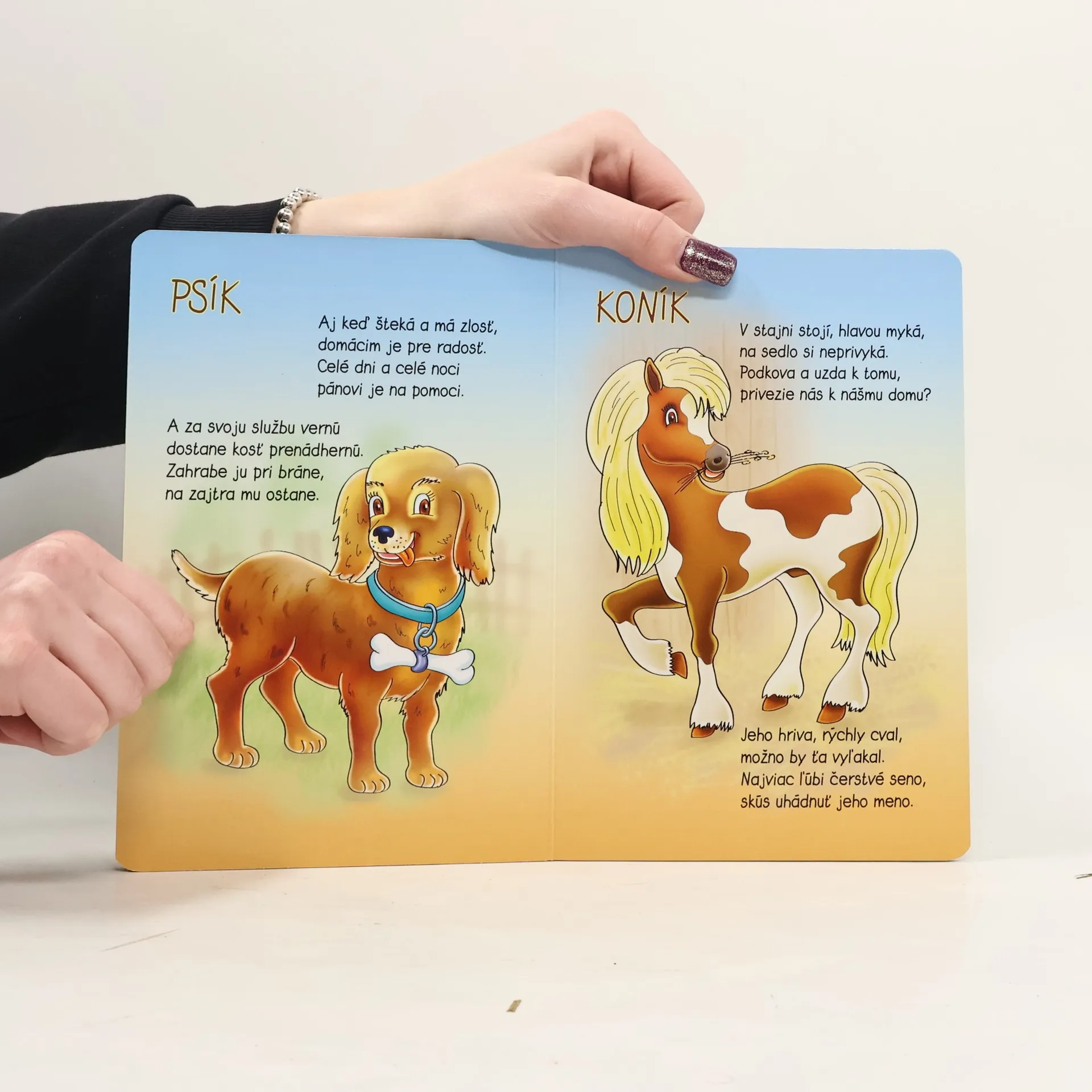 Leporelo s milými básničkami a pôvabnými ilustráciami, vďaka ktorému deti spoznávajú zvieratká na dvore.