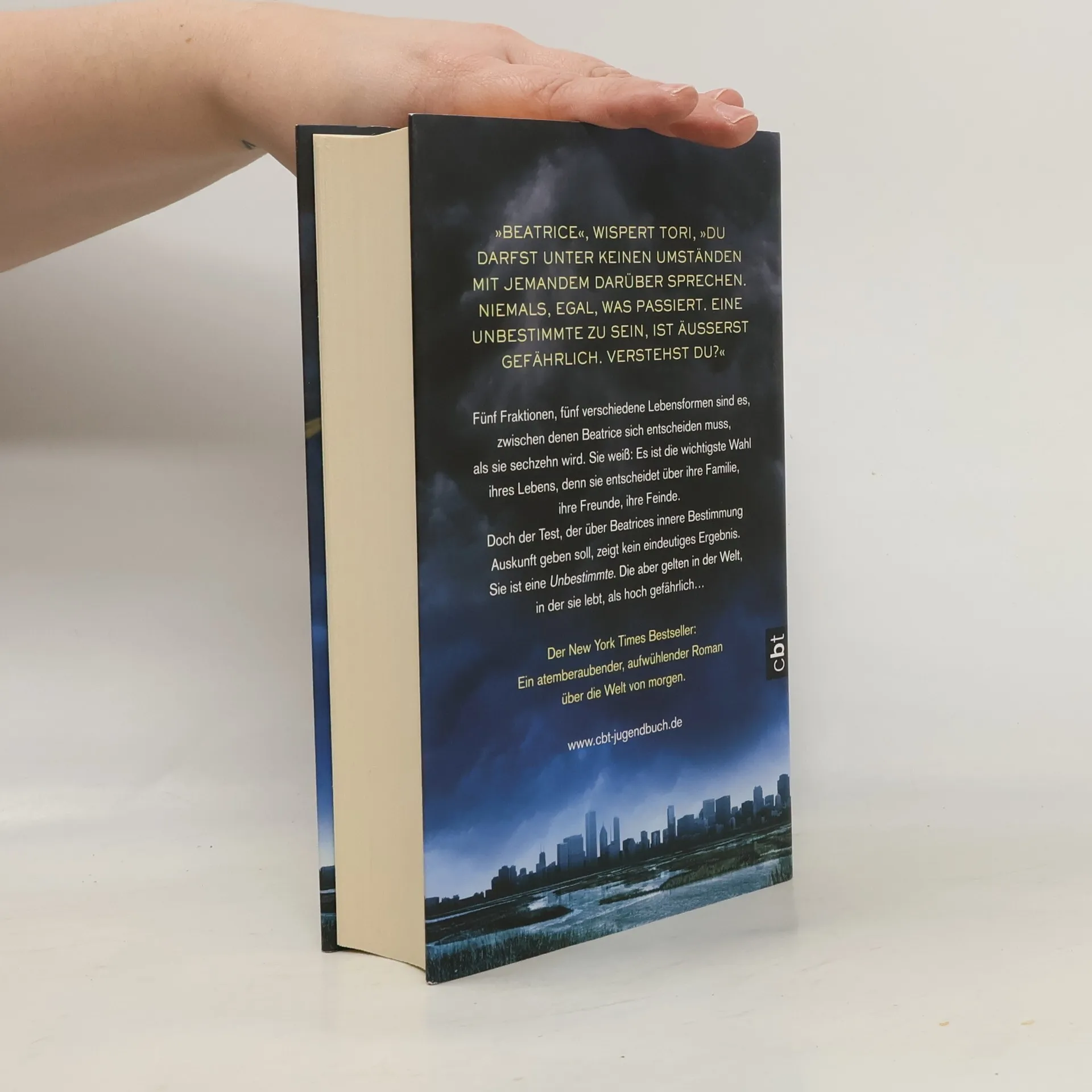 Was ist deine Bestimmung? Altruan – die Selbstlosen. Candor – die Freimütigen. Ken – die Wissenden. Amite – die Friedfertigen. Und schließlich Ferox – die Furchtlosen … Fünf Fraktionen, fünf völlig verschiedene Lebensformen sind es, zwischen denen Beatrice, wie alle Sechzehnjährigen ihrer Welt, wählen muss. Ihre Entscheidung wird ihr gesamtes künftiges Leben bestimmen, denn die Fraktion, der sie sich anschließt, gilt fortan als ihre Familie. Doch der Eignungstest, der über Beatrices innere Bestimmung Auskunft geben soll, zeigt kein eindeutiges Ergebnis. Sie ist eine Unbestimmte, sie trägt mehrere widerstreitende Begabungen in sich. Damit gilt sie als Gefahr für die Gemeinschaft. Beatrice entscheidet sich, ihre bisherige Fraktion, die Altruan, zu verlassen, und schließt sich den wagemutigen Ferox an. Dort aber gerät sie ins Zentrum eines Konflikts, der nicht nur ihr Leben, sondern auch das all derer, die sie liebt, bedroht…