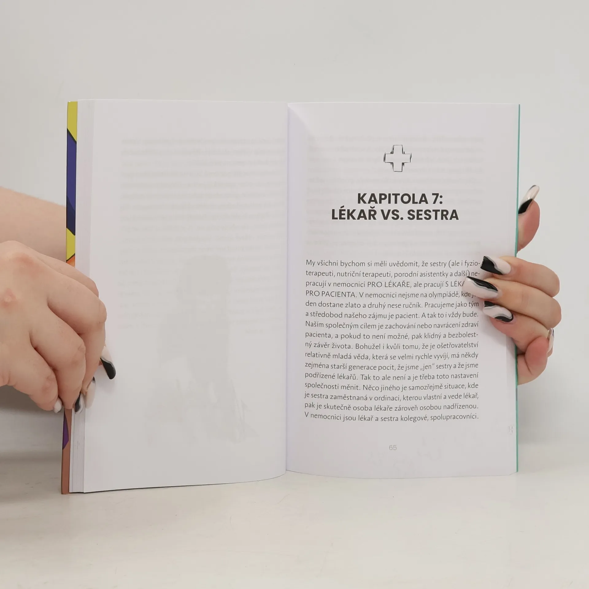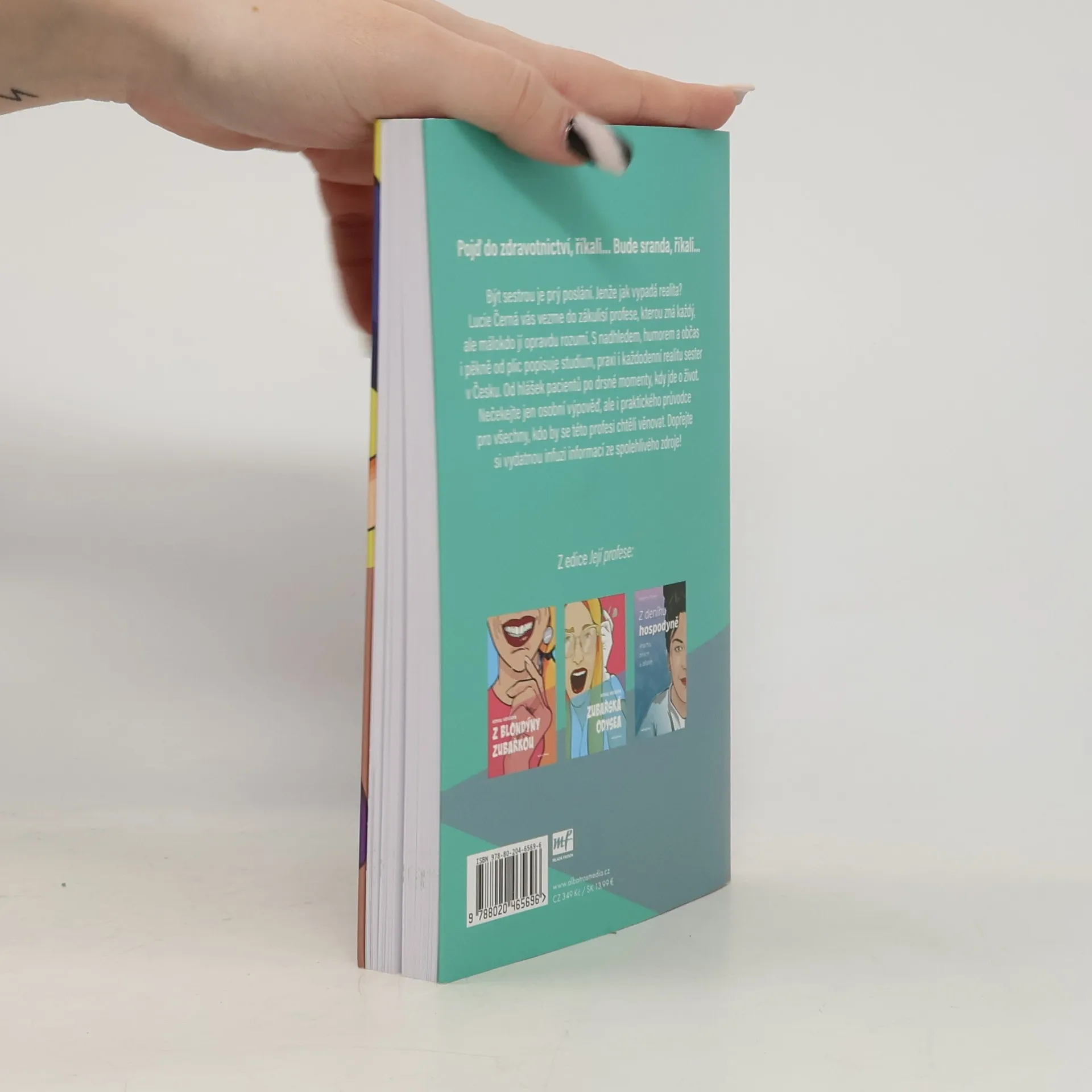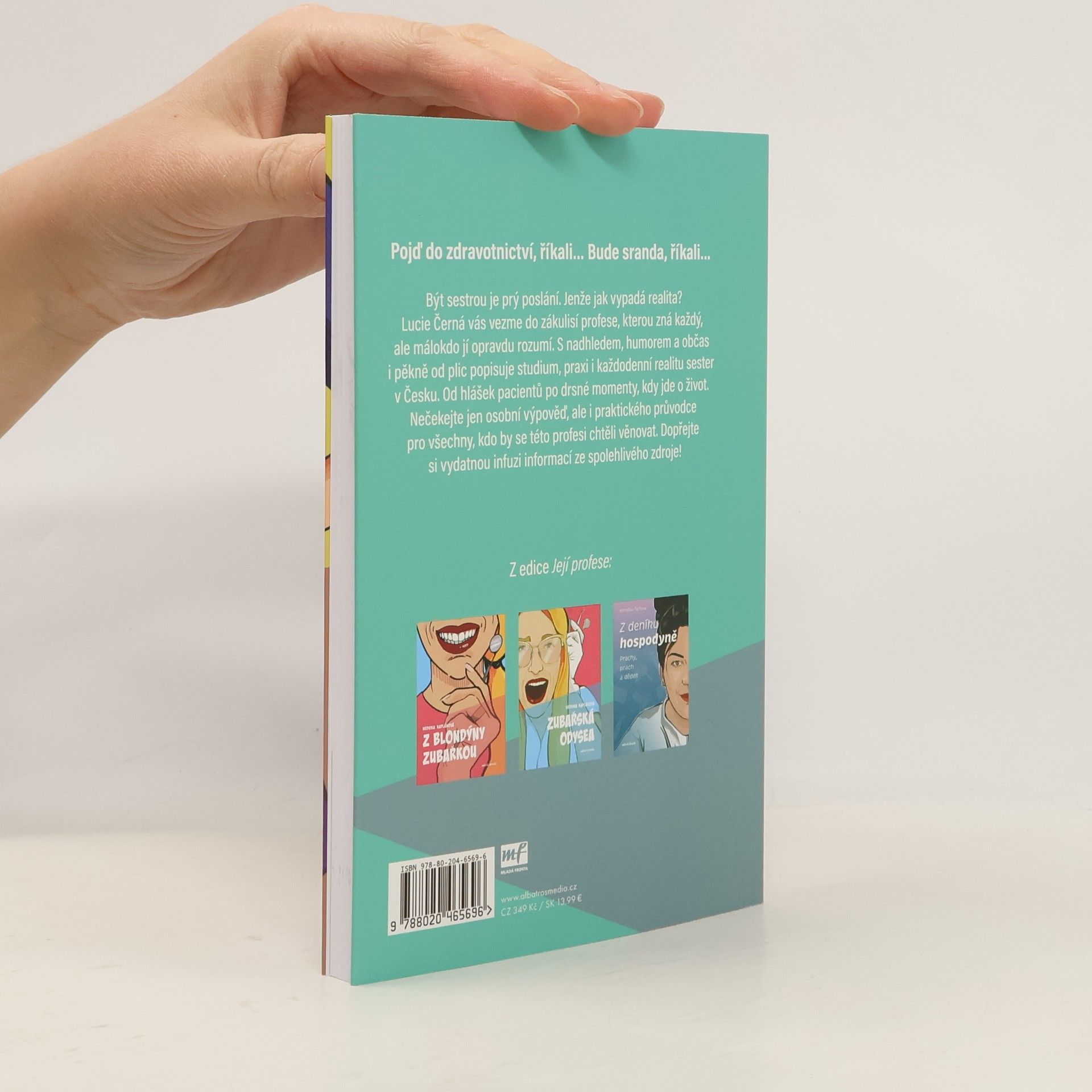 Vše o profesi všeobecné sestry – s nadsázkou a bez narkózy. Lucie Černá vám vysvětlí, proč v nemocnici lékaři a sestry nejsou na olympiádě, kde jeden dostane zlato a druhý nese ručník. Ukáže vám, jak je ošetřovatelská práce důležitá, stejně jako další zdravotnické profese v nemocnicích. Bourá mnohé mýty a upozorňuje i na slabiny systému. Ale hlavně vypráví příběhy, které vás dojmou i rozesmějí, ale rozhodně donutí k zastavení.