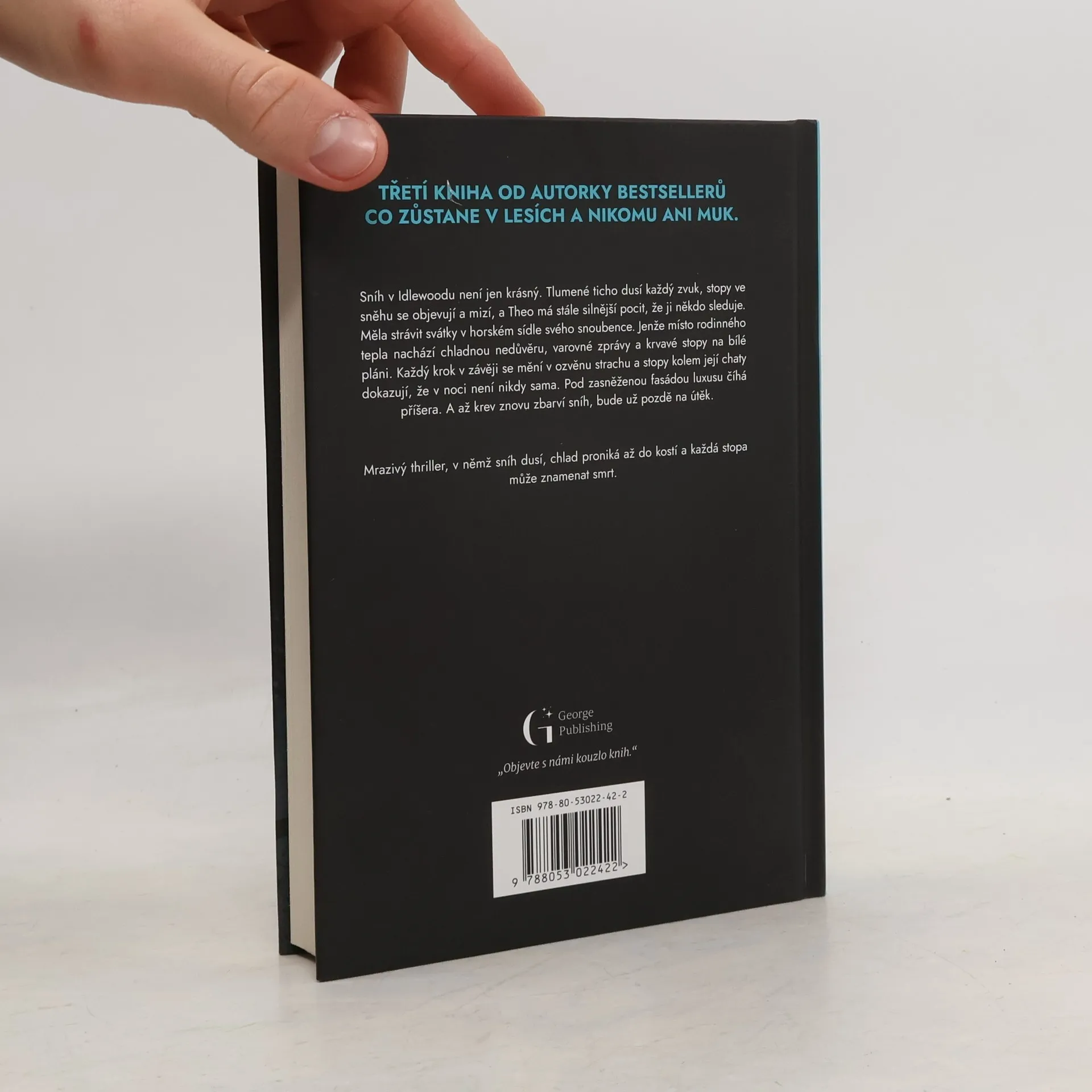 Sníh v Idlewoodu není jen krásný. Tlumené ticho dusí každý zvuk, stopy ve sněhu se objevují a mizí, a Theo má stále silnější pocit, že ji někdo sleduje. Měla strávit svátky v horském sídle svého snoubence. Jenže místo rodinného tepla nachází chladnou nedůvěru, varovné zprávy a krvavé stopy na bílé pláni. Každý krok v závěji se mění v ozvěnu strachu a stopy kolem její chaty dokazují, že v noci není nikdy sama. Pod zasněženou fasádou luxusu číhá příšera. A až krev znovu zbarví sníh, bude už pozdě na útěk. Mrazivý thriller, v němž sníh dusí, chlad proniká až do kostí a každá stopa může znamenat smrt.