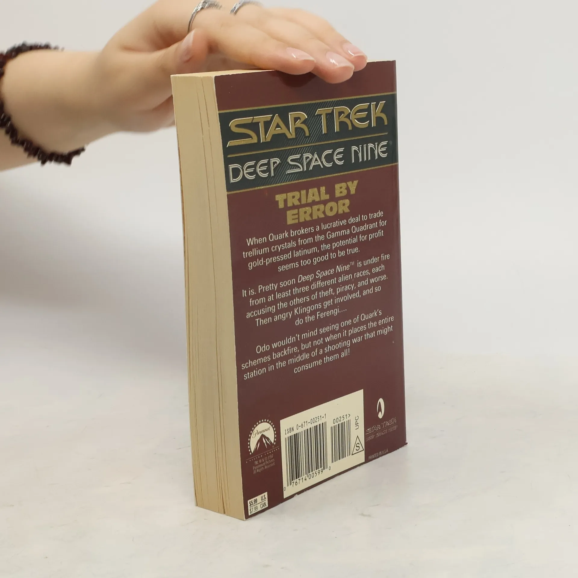 When Quark brokers a lucrative deal to trade trellium crystals from the Gamma Quadrant for gold-pressed latinum, the potential for profit seems too good to be true. It is. Pretty soon, Deep Space Nine is under fire from at least three different alien races, each accusing the others of theft, piracy, and worse. Then, angry Klingons get involved, and so do the Ferengi... Odo wouldn't mind seeing one of Quark's schemes backfire, but not when it places the entire station in the middle of a shooting war that might consume them all!