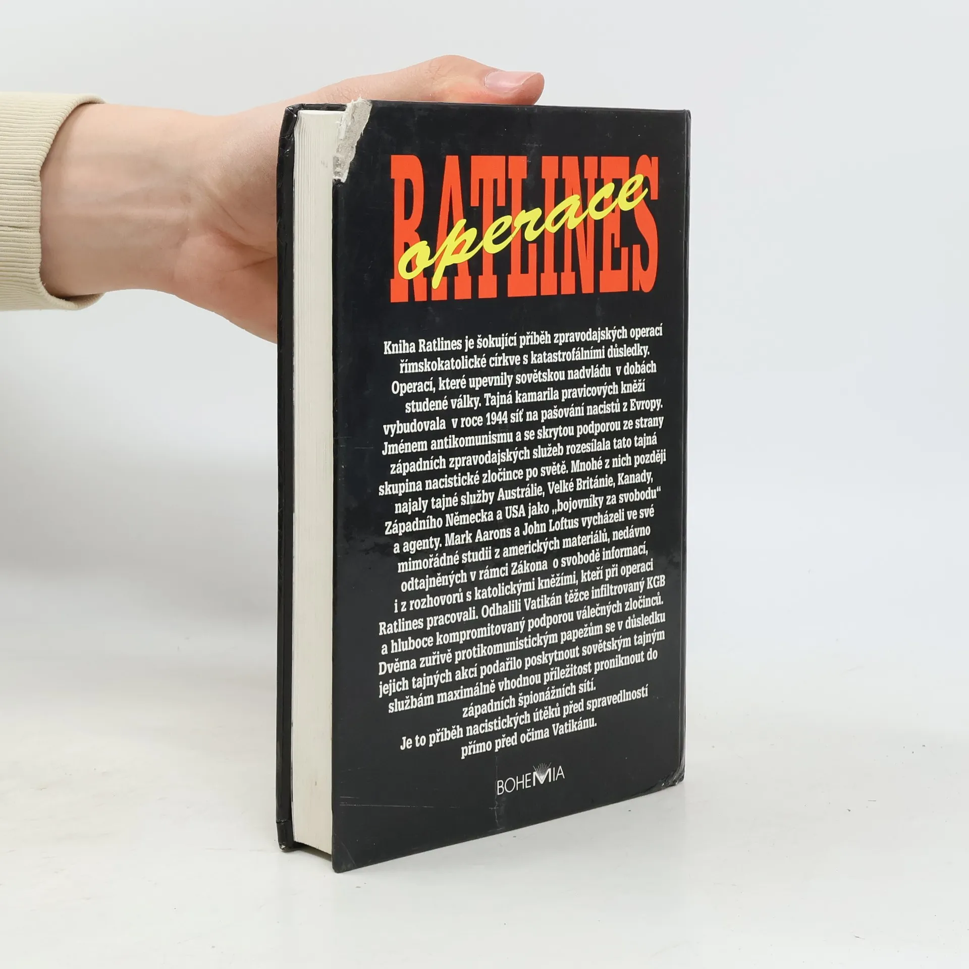 Šokující fakta o nacistických sítích upředených Vatikánem a vyzrazených západními zpravodajskými službami Moskvě. Kniha Ratlines je šokující příběh zpravodajských operací římskokatolické církve s katastrofálními důsledky. Operací, které upevnily sovětskou nadvládu v dobách studené války. Tajná kamarila pravicových kněží vybudovala v roce 1944 síť na pašování nacistů z Evropy. Jméneme antikomunismu a se skrytou podporou ze strany západních zpravodajských služeb rozesílala tato tajná skupina nacistické zločince po světe. Mnohé z nich později najaly tajné služby Austrálie, Velké Británie, Kanady, Západního Německa a USA jako „bojovníky za svobodu“ a agenty. Mark Aarons a John Loftus vycházeli ve své mimořádné studii z amerických materiálů, nedávno odtajněných v rámci Zákona o svobodě informací, i z rozhovorů s katolickými kněžími, kteří pri operaci Ratlines pracovali. Odhalili Vatikán těžce infiltrovaný KGB a hluboce kompromitovaný podporou válečných zločinců. Dvěma zuřivě protikomunistickým papežům se v důsledku jejich tajných akcí podařilo poskytnout sovětským tajným službám maximálně vhodnou příležitost proniknout do západních špionážních sítí. Je to přiběh nacistických útěků před spravedlností přímo před očima Vatikánu.