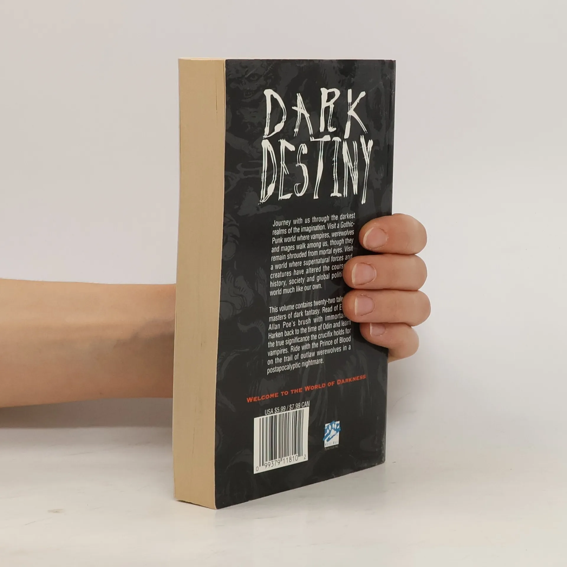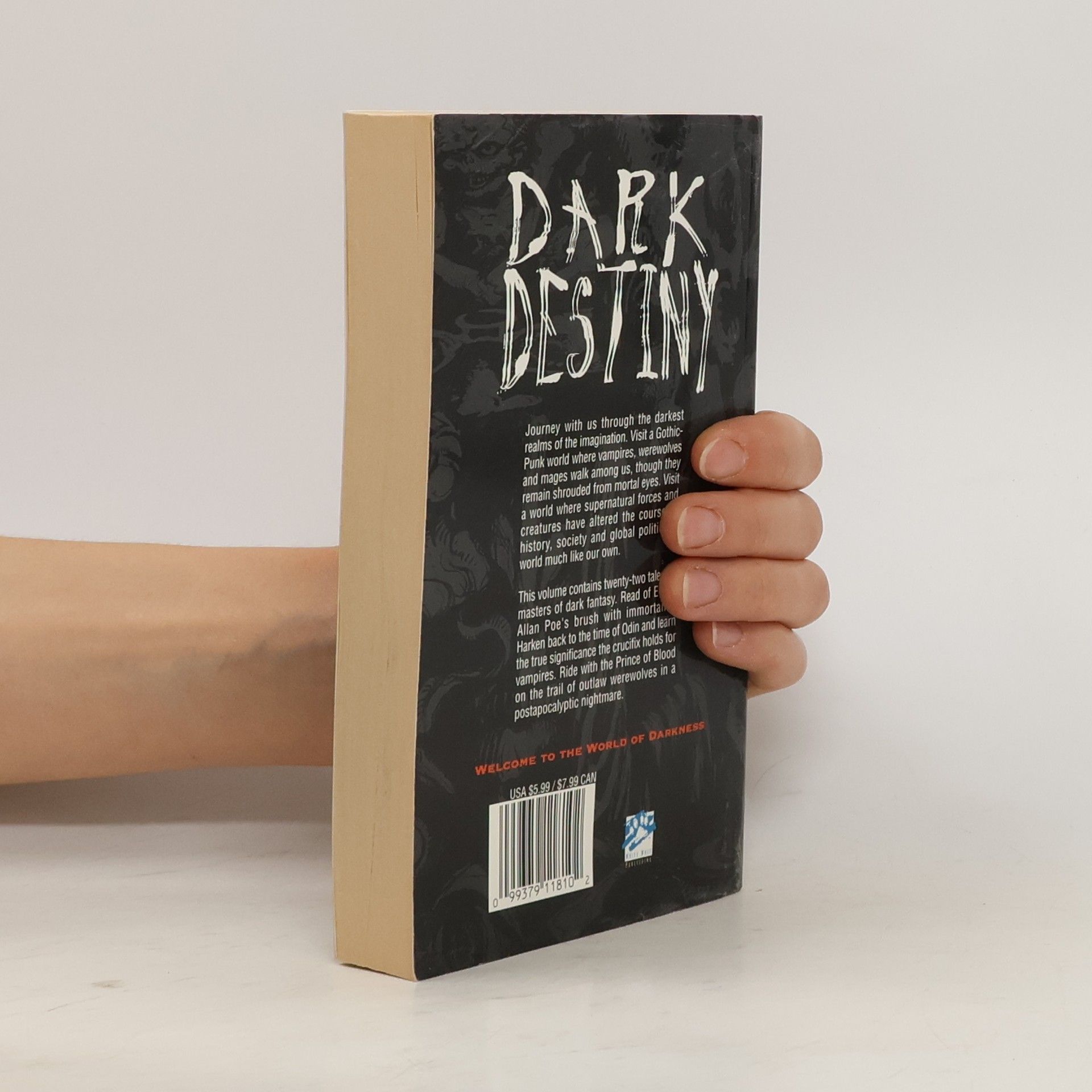 Humanity has been manipulated by shadowy, inhuman beings throughout history. Secret wars have been waged to settle vampires' disputes. Cultures have been created to advance mages' visions of Ascension. Enemies of the Earth have been defeated by werewolves as they prepare for their Apocalypse. This is the World of Darkness, a place where one's fears may become reality. Dark Destiny features short stories by Robert Bloch, Rick Hautala, Nancy A. Collins, Robert Weinberg and others.