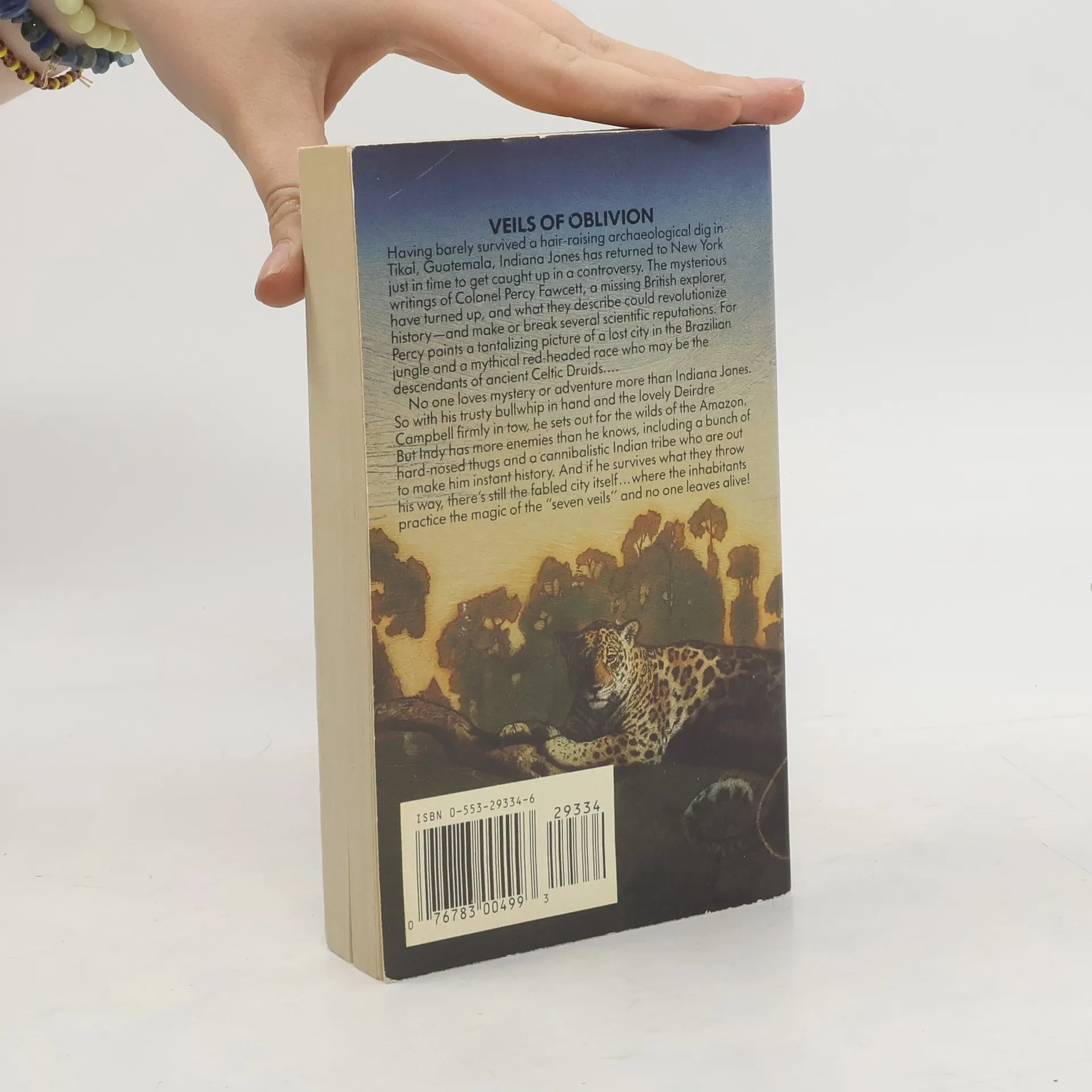 Having barely survived a hair-raising archaeological dig in Tikal, Guatemala, Indiana Jones has returned to New York just in time to get caught up in a controversy. The mysterious writings of Colonel Percy Fawcett, a missing British explorer, have turned up, and what they describe could revolutionize history—and make or break several scientific reputations. For Percy paints a tantalizing picture of a lost city in the Brazilian jungle, and a mythical redheaded race who may be the descendants of ancient Celtic Druids.No one loves mystery or adventure more than Indiana Jones. So with his trusty bullwhip in hand and the lovely Deirdre Campbell firmly in tow, he sets out for the wilds of the Amazon. But Indy has more enemies than he knows, including a bunch of hard-nosed thugs and a cannibalistic Indian tribe that is out to make him instant history. And if he survives what they throw in his path, there’s still the fabled city itself . . . where the inhabitants practice the magic of the “seven veils” and no one leaves alive!