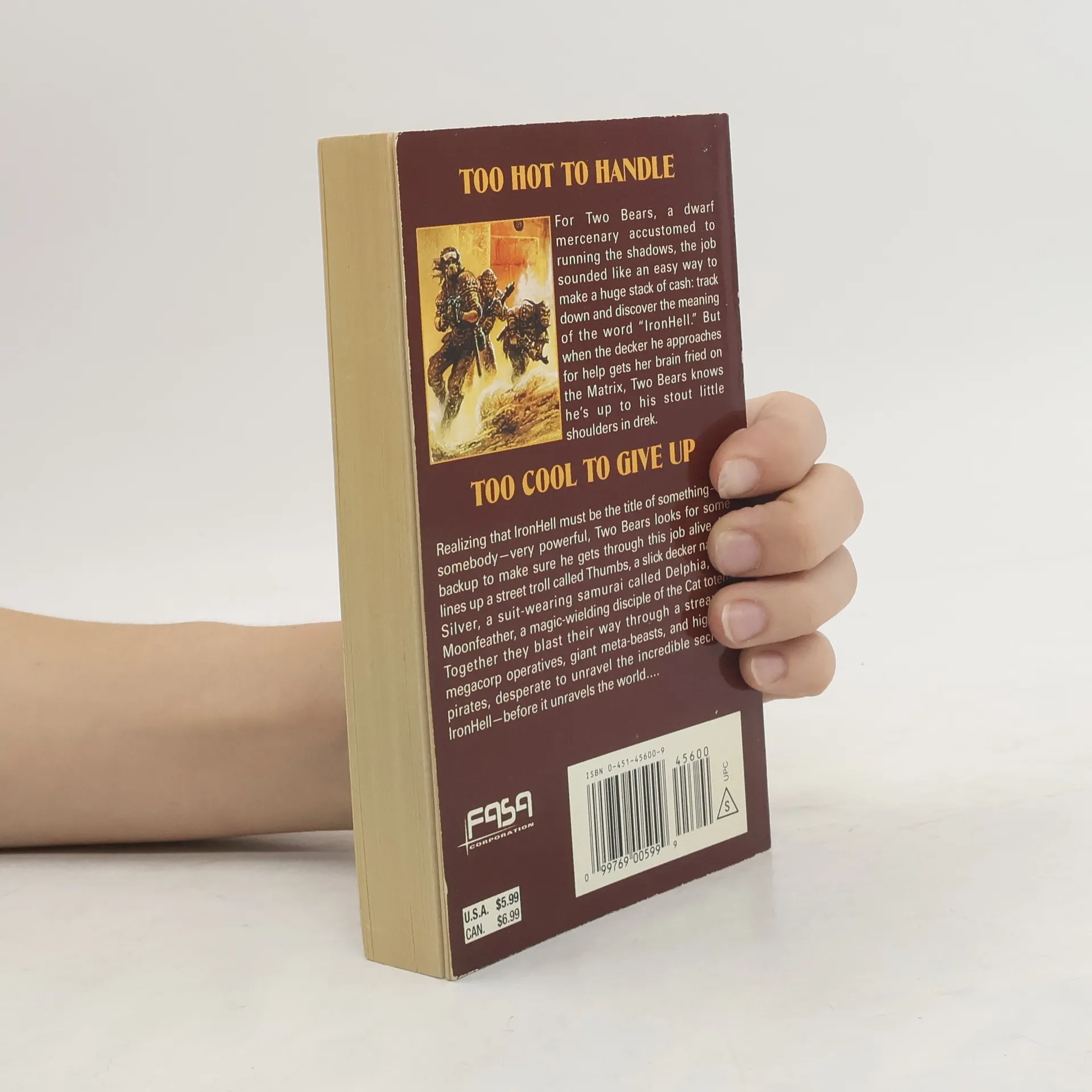 TOO HOT TO HANDLEFor Two Bears, a dwarf mercenary accustomed to running the shadows, the job sounded like an easy way to make a huge stack of cash: track down and discover the meaning of the world "IronHell." But when the decker he approaches for help gets her brain fried on the Matrix, Two Bears knows he's up to his stout little shoulders in drek.TOO COOL TO GIVE UPRealizing that IronHell must be the title of something - or somebody - very powerful, Two Bears looks for some backup to make sure he gets through this job alive. He lines up a street troll called Thumbs, a slick decker named Silver, a suit-wearing samurai called Delphia, and Moonfeather, a magic-wielding disciple of the Cat totem. Together they blast their way through a stream of megacorp operatives, giant meta-beasts, and high-tech pirates, desperate to unravel the incredible secret of IronHell - before it unravels the world...