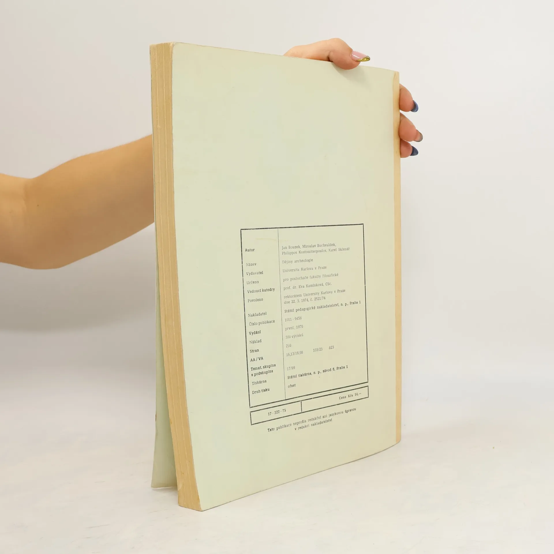 Dějiny Archeologie, Jan Bouzek, Miroslav Buchvaldek, Philippos Kostomitsopoulos, Karel Sklenář