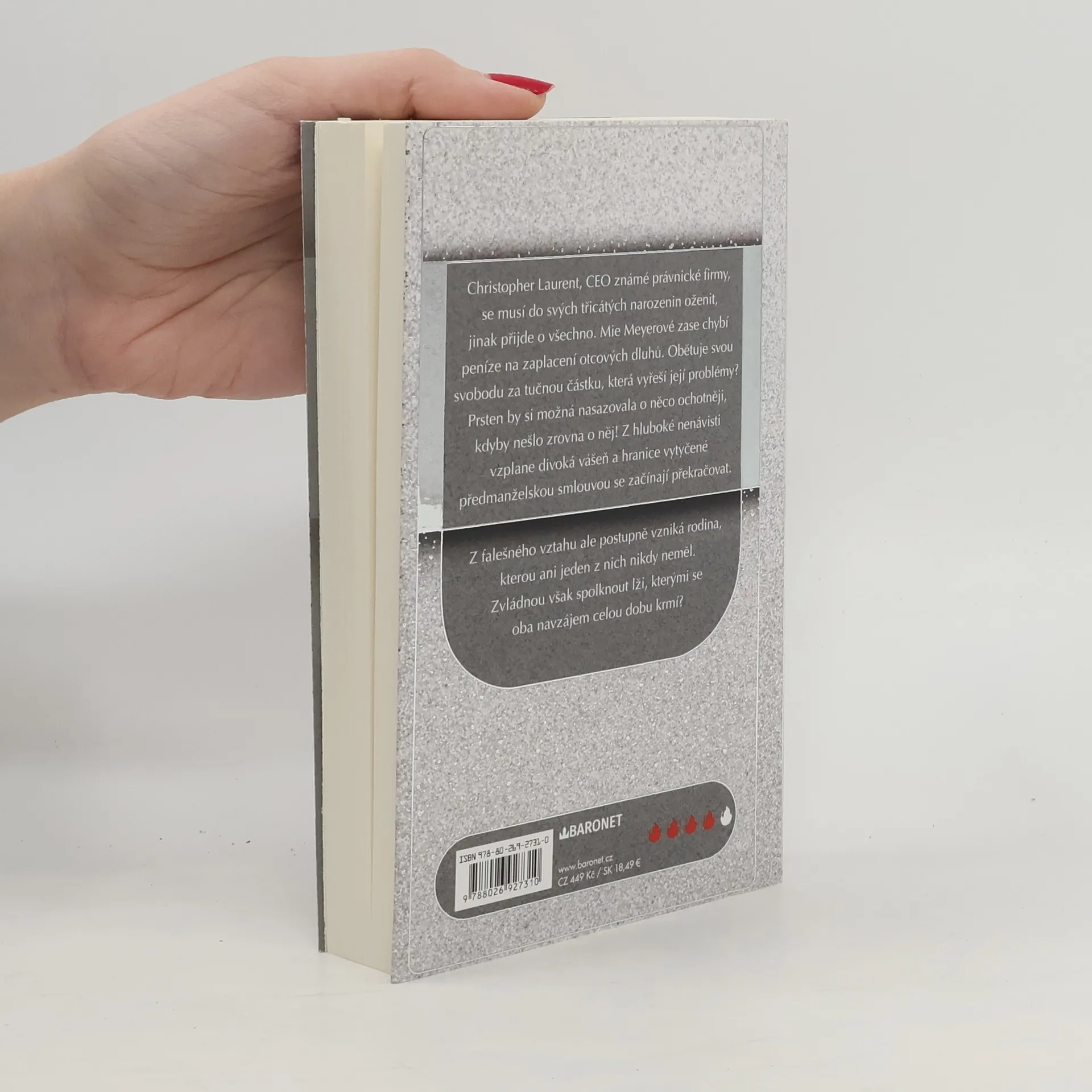 Zůstane jejich manželství jen obchodní dohodou? Christopher Laurent, CEO známé právnické firmy, se musí do svých třicátých narozenin oženit, jinak přijde o všechno. Mie Meyerové zase chybí peníze na zaplacení otcových dluhů. Obětuje svou svobodu za tučnou částku, která vyřeší její problémy? Prsten by si možná nasazovala o něco ochotněji, kdyby nešlo zrovna o něj! Z hluboké nenávisti vzplane divoká vášeň a hranice vytyčené předmanželskou smlouvou se začínají překračovat. Z falešného vztahu vzniká rodina, kterou ani jeden z nich nikdy neměl. Zvládnou ale spolknout lži, kterými se navzájem krmí?