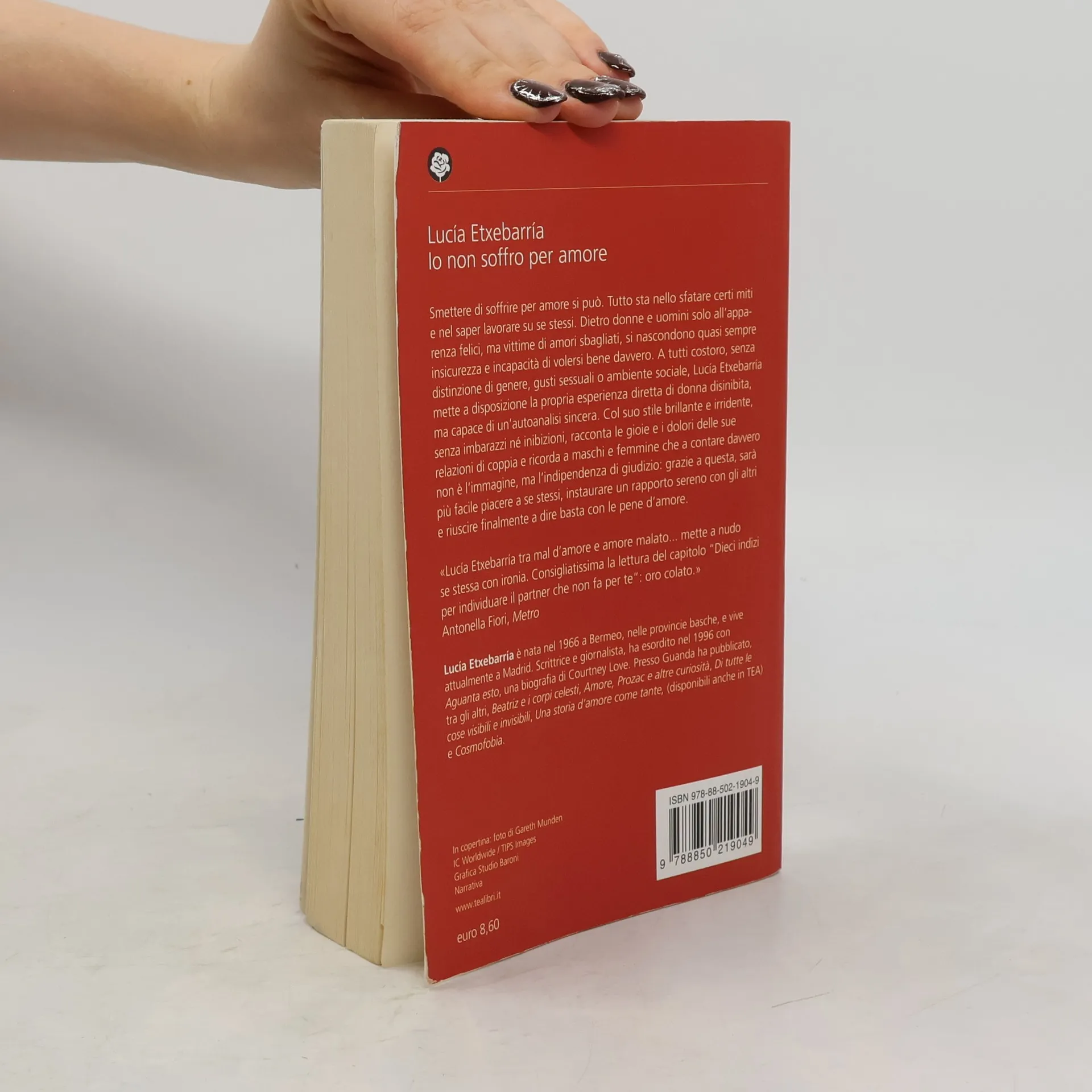 Smettere di soffrire per amore si può. Parola di Lucía Etxebarría. Tutto sta nello sfatare certi miti e nel saper lavorare su se stessi. Cosa regala, infatti, l'amore? La sensazione inebriante di toccare il cielo con un dito, di sentire che siamo creature uniche e meravigliose, indispensabili per il prossimo come l'aria che respira? Ci rende infinitamente sicuri di noi? La realtà è spesso assai diversa. Dietro donne e uomini che si accaniscono a voler assomigliare ai modelli imposti dai media, che sfilano per le strade sfoggiando vestiti identici, con corpi smilzi a forza di patire la fame e con relazioni all'apparenza felici, si nascondono quasi sempre un'insicurezza di base e l'incapacità di volersi bene veramente o almeno di accettarsi. Ci sono persone scontente di sé, perché qualcuno le vuole cambiare, oppure le svaluta, o perché nel partner cercano, sbagliando, una figura parentale. A tutti costoro, senza distinzione di genere, gusti sessuali o ambiente sociale, l'autrice mette a disposizione la propria esperienza diretta di donna disinibita e in apparenza scanzonata, ma capace di un'autoanalisi sincera. Lo fa senza imbarazzi, mezzi termini o inibizioni: ricorda a maschi e femmine che a contare davvero non è l'immagine, ma l'indipendenza di giudizio. Conquistandola sarà più facile piacere a se stessi, instaurare un rapporto sereno con gli altri e riuscire finalmente a dire basta con le pene d'amore.
