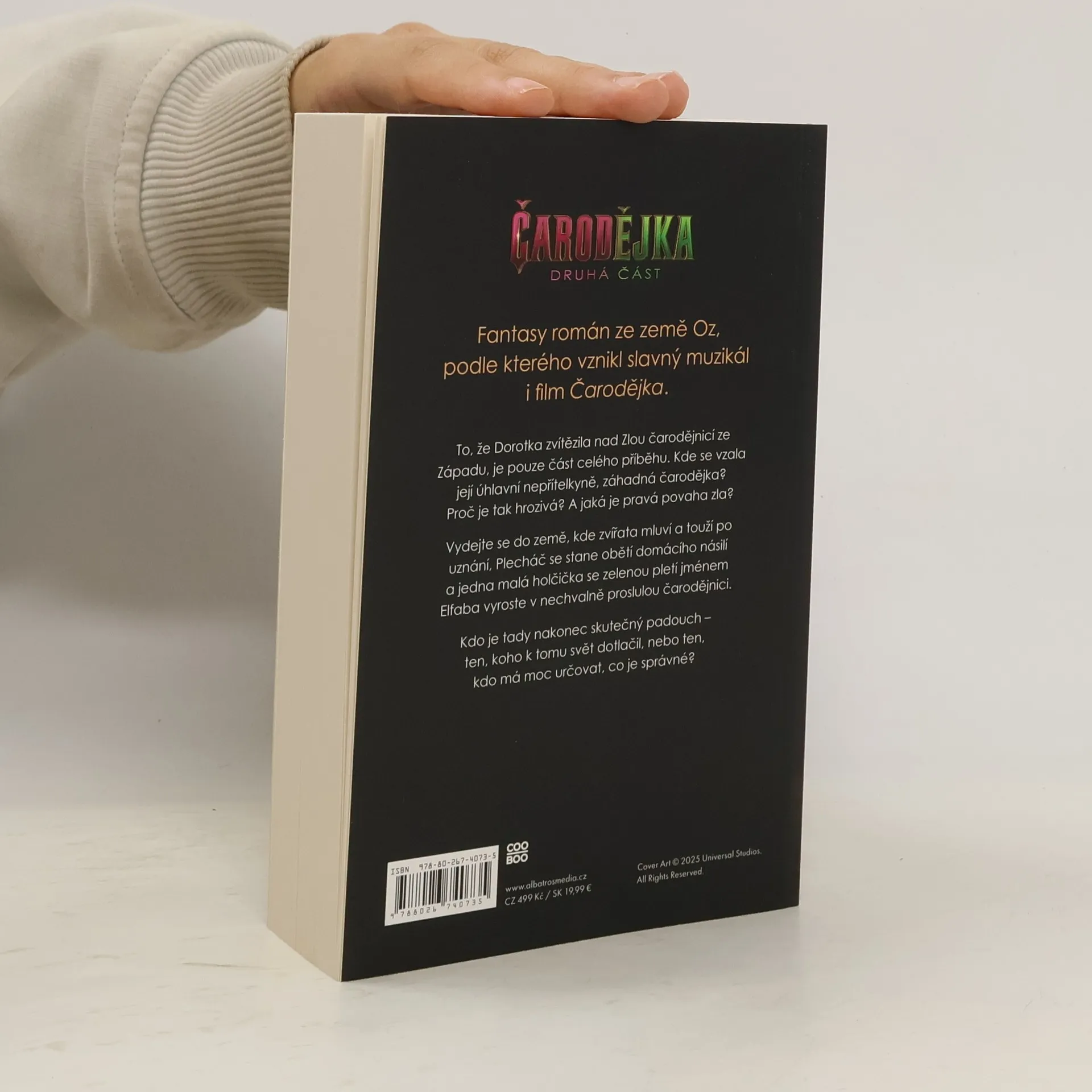 Fantasy román ze země Oz, podle kterého vznikl slavný muzikál i film Čarodějka. Když Dorotka zvítězila nad Zlou čarodějnicí ze Západu v klasickém příběhu L. Franka Bauma Čaroděj ze země Oz, byli jsme svědky jen její části příběhu. Ale co její úhlavní nepřítelkyně, záhadná Čarodějka? Kde se vzala? Proč je tak zlá? A jaká je pravá povaha zla? Román Čarodějka vypráví příběh o zemi, kde zvířata mluví a touží po uznání a Plecháč se stane obětí domácího násilí. A pak je tu malá holčička se zelenou pletí jménem Elfaba, která vyroste v nechvalně proslulou Zlou čarodějnici ze Západu. Chytré a popudlivé stvoření, které nikdo nechápe a které stojí proti všem našim předpokladům o dobru a zlu.