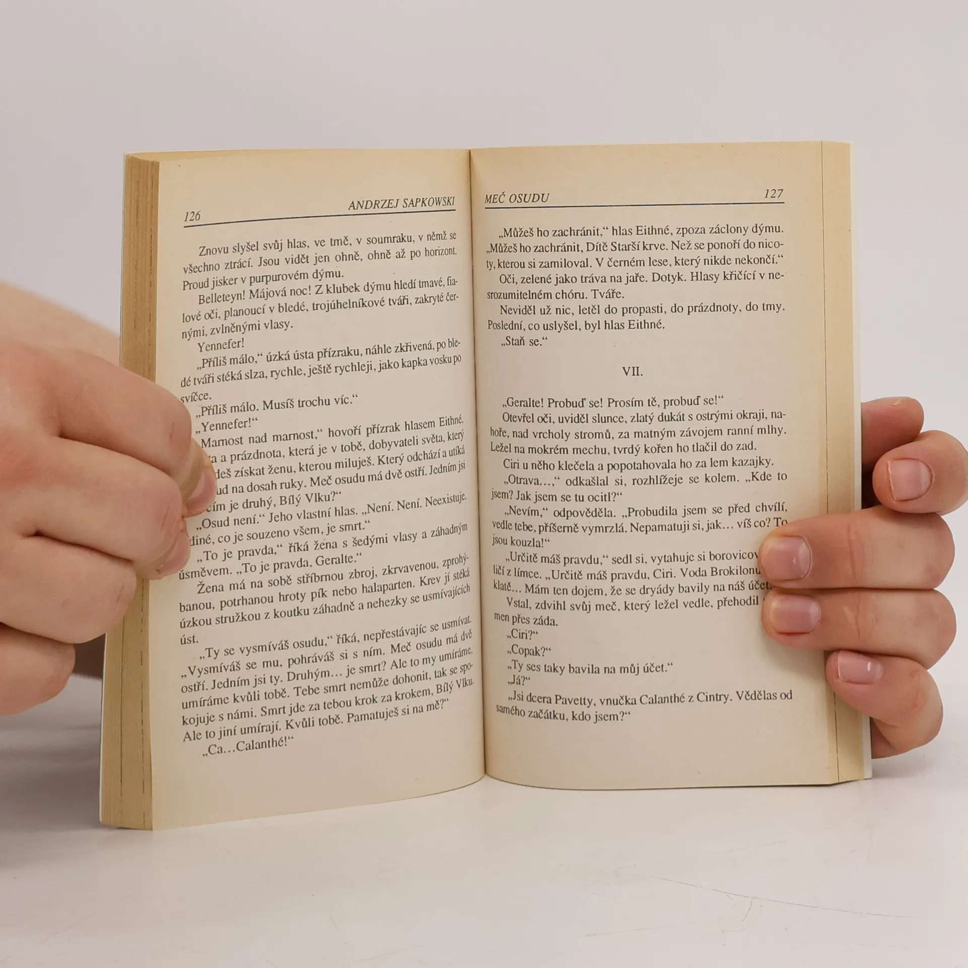 Tři příběhy se Zaklínačem. Hlavním hrdinou tvorby A. Sapkowského je zaklínač Geralt z Rivie. Jako nájemný hubitel upírů, vlkodlaků a všemožných nebezpečných netvorů pochopitelně ovládá bojové a magické techniky nezbytné pro jeho zaměstnání. nicméně není pouze chladnokrevným profesionálem a už vůbec ne jedním ze superhrdinů, jimiž se žánr fantasy jen hemží. Postupně vychází najevo, že neměl možnost si svůj osud svobodně zvolit, ale naopak je nucen draze platit za schopnosti a dovednosti nedosažitelné a vesměs též nepochopitelné běžným smrtelníkům. Proto vyvolává strach a zároveň nevraživost a odpor těch, jejichž životy vlastně chrání. Přes své pozitivní působení jsou zaklínači odsouzeni k vyhnanství na samém okraji společnosti, která sice působí vnějškově středověkým dojmem, avšak s mnoha atributy převzatými ze současnosti. -- zdroj: legie.info --... celý text
