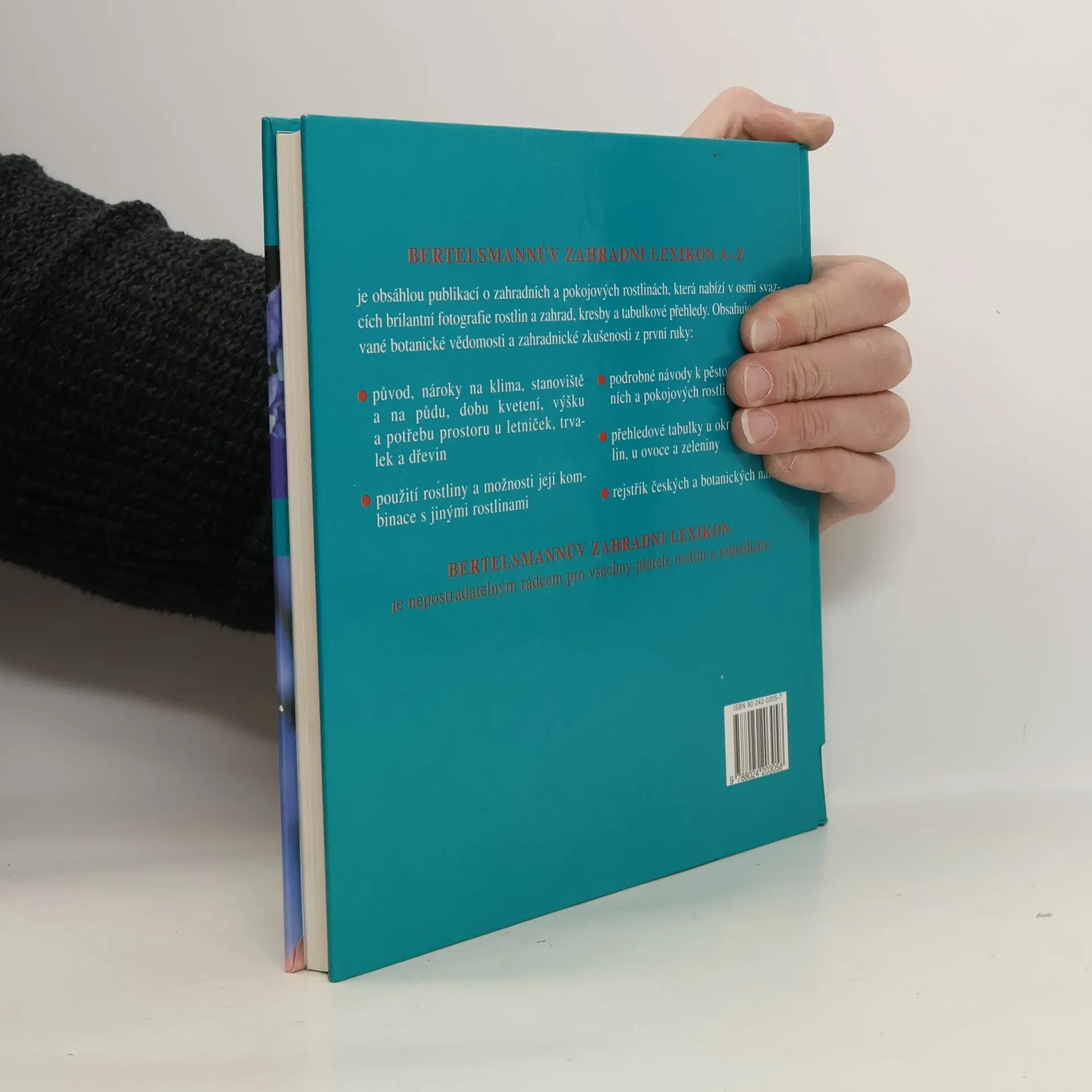 Zahradní a pokojové rostliny. V knize jsou pod botanickými názvy (v abecedním pořadí) uvedeny běžné i méně známé rostliny pěstované v okrasných zahradách, na balkonech a v bytech i různé druhy zeleniny, dále aromatické a léčivé rostliny, ovocné dřeviny a bobuloviny. Kromě krásných barevných fotografií jsou u každé rostliny připojeny rady, jak ji správně pěstovat, jaké má nároky na půdu, světlo a zálivku, jak ji kombinovat s jinými rostlinami apod. - V knize jsou i různé tabulky odrůd okrasných rostlin, ovoce a zeleniny.