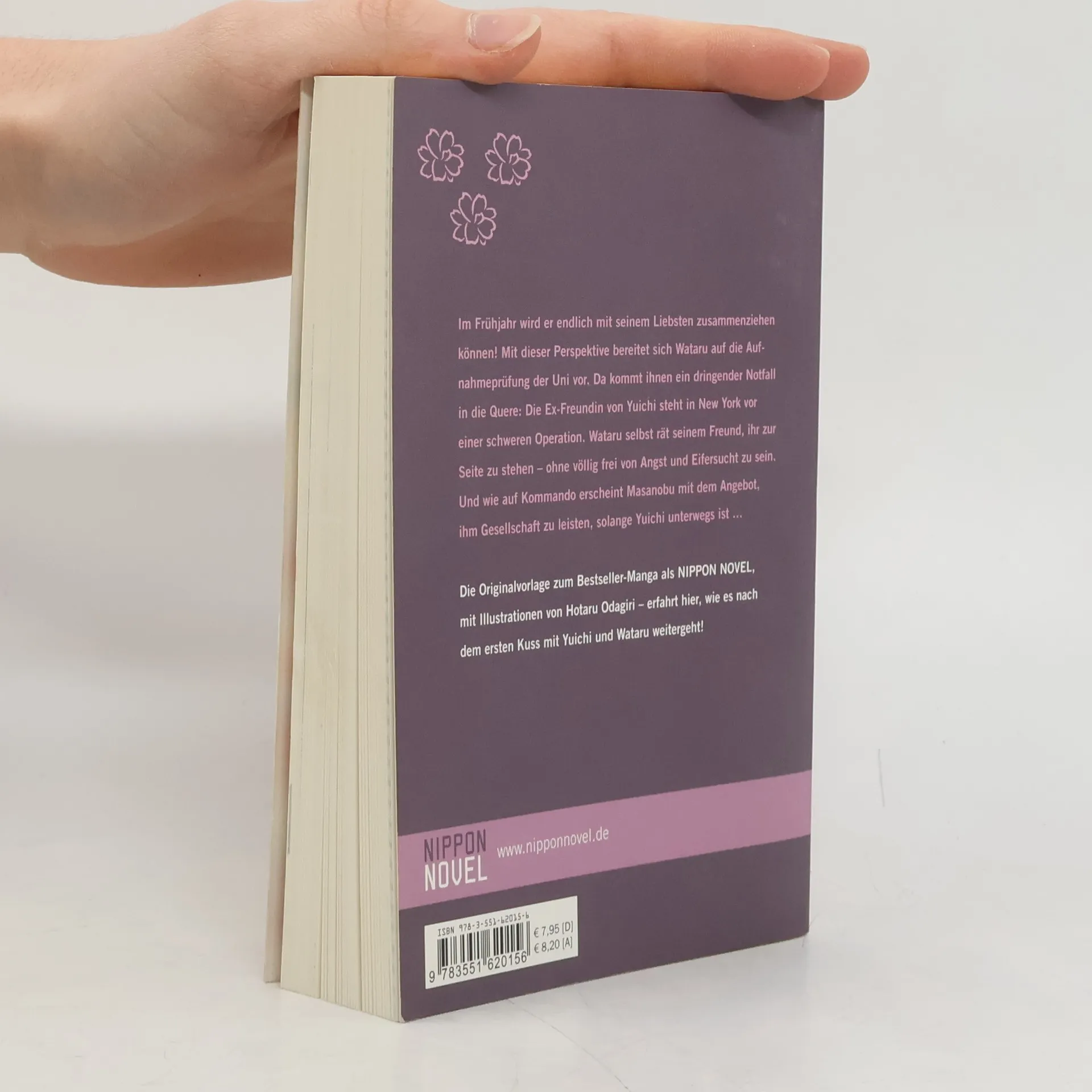 Even if you know about the past, I don’t think that’s going to help you in the future. The time for secrets is almost past. As Wataru studies for his college exams, Yuichi can only offer his support—but he also offers the promise that if Wataru passes, the two will finally move in together. After so much time spent keeping their passion hidden, the men approach a new stage in their relationship. But when old antagonists come out of the woodwork to form new alliances, they play on Wataru’s fears that he might be losing Yuichi. Will their love survive into maturity? The ultimate test comes the day of Wataru’s exam, when Yuichi reveals that he’s going to New York to visit his first love, who is undergoing dangerous surgery. Wataru sends Yuichi off with a smile, but his anxiety is at a fever pitch. When Masanobu Asaka, an older admirer, tells Wataru that he wants to be there to support Wataru until Yuichi comes back, Wataru finds it difficult to refuse such an earnest and moving request. What kind of a future does he want for himself, and will Yuichi be a part of it after all? All he can do is hope that the ring will confess his love.