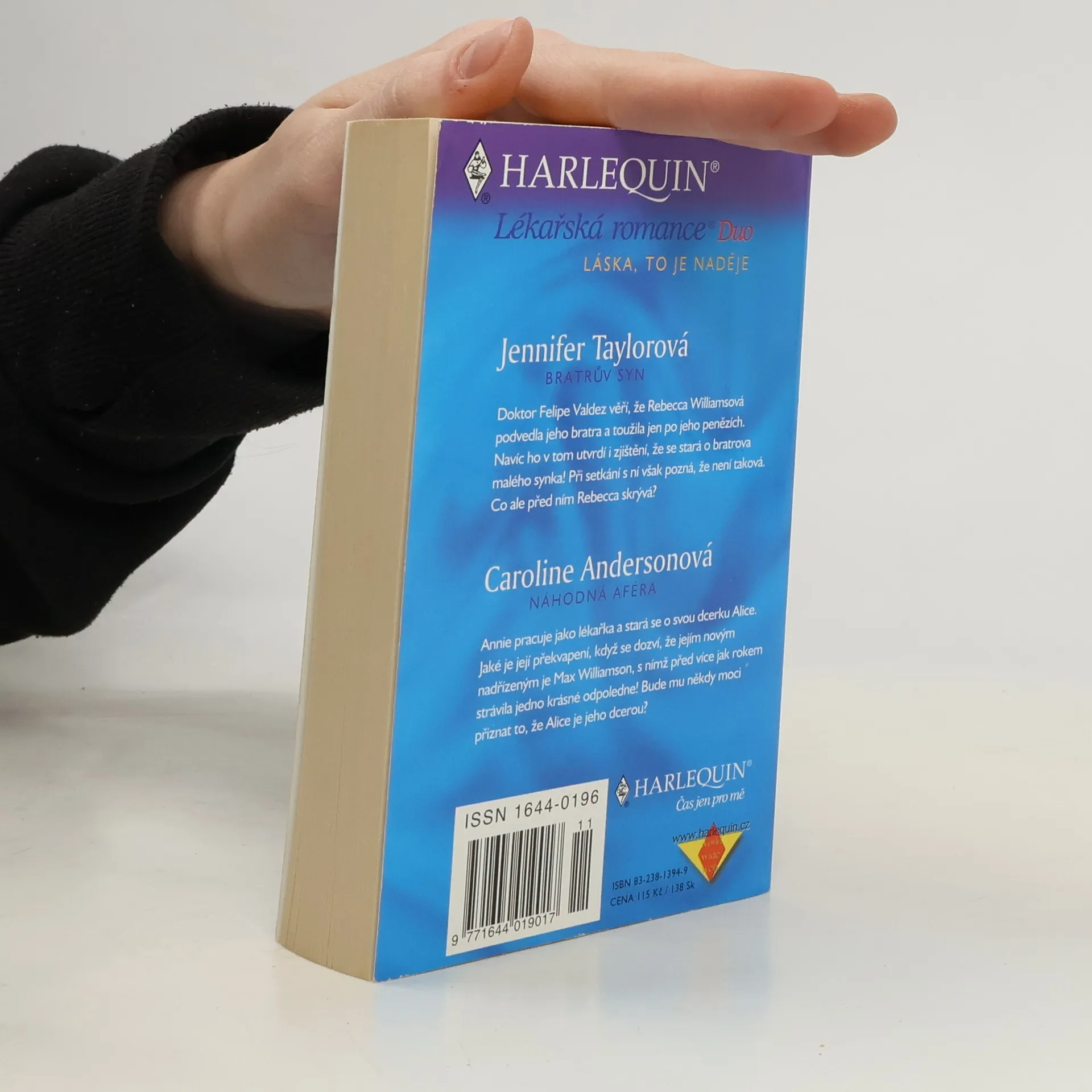 Jennifer Taylor-Bratrův syn Doktor Felipe Valdez věří, že Rebecca Williamsová podvedla jeho bratra a toužila jen po jeho penězích. Navíc ho v tom utvrdí i zjištění, že se stará o bratrova malého synka! Při setkání s ní však pozná, že není taková. Co ale před ním Rebecca skrývá? Caroline Anderson-Náhodná aféra Annie pracuje jako lékařka a stará se o svou dcerku Alice. Jaké je její překvapení, když se dozví, že jejím novým nadřízeným je Max Williamson, s nímž před více jak rokem strávila jedno krásné odpoledne! Bude mu někdy moci přiznat to, že Alice je jeho dcerou?