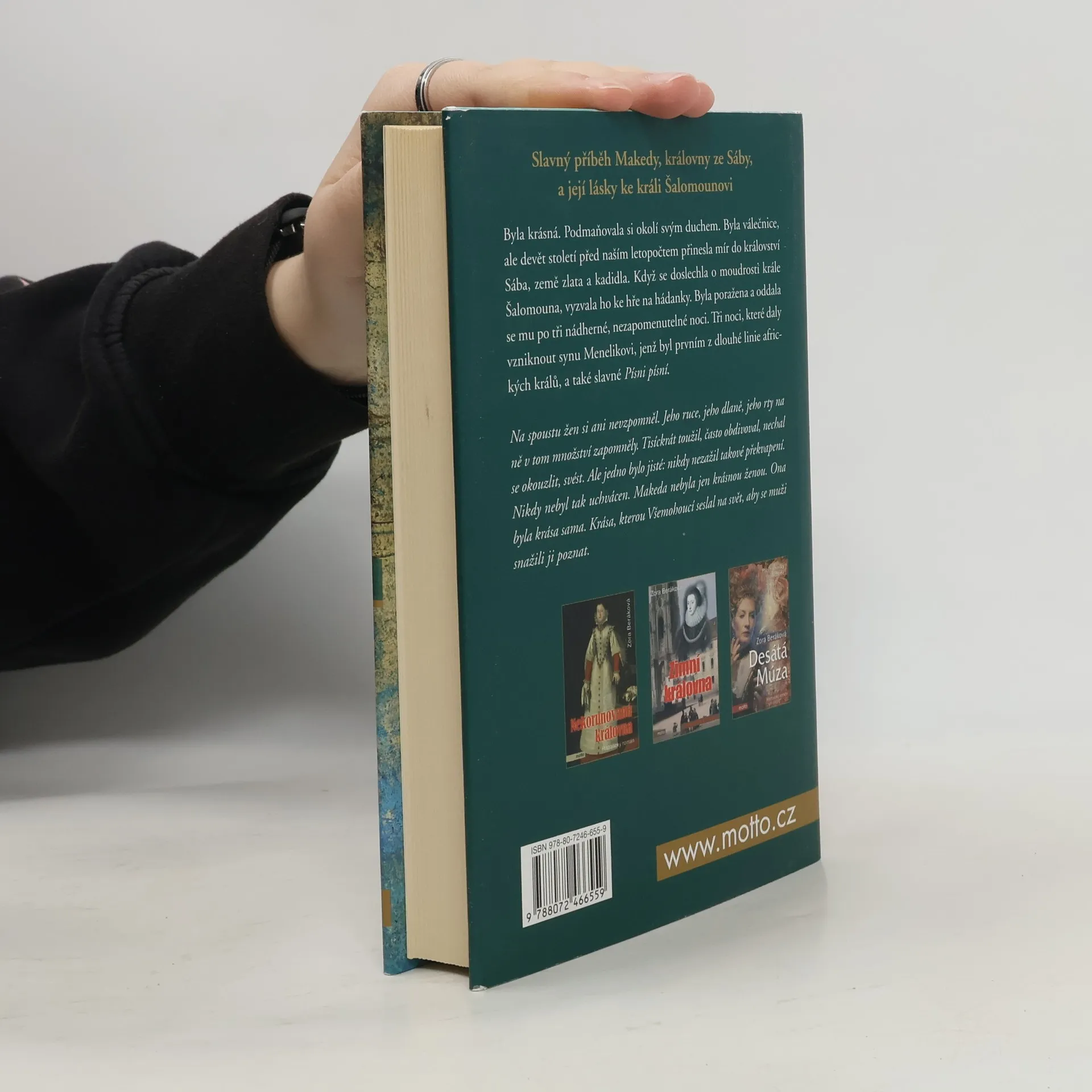 Byla krásná. Podmaňovala si okolí svým duchem. Byla válečnice, ale devět století před naším letopočtem přinesla mír do království Sába, země zlata a kadidla. Když se doslechla o moudrosti krále Šalomouna, vyzvala ho ke hře na hádanky. Byla poražena a oddala se mu po tři nádherné, nezapomenutelné noci. Tři noci, které daly vzniknout synu Menelikovi, jenž byl prvním z dlouhé linie afrických králů, a také slavné Písni písní.
