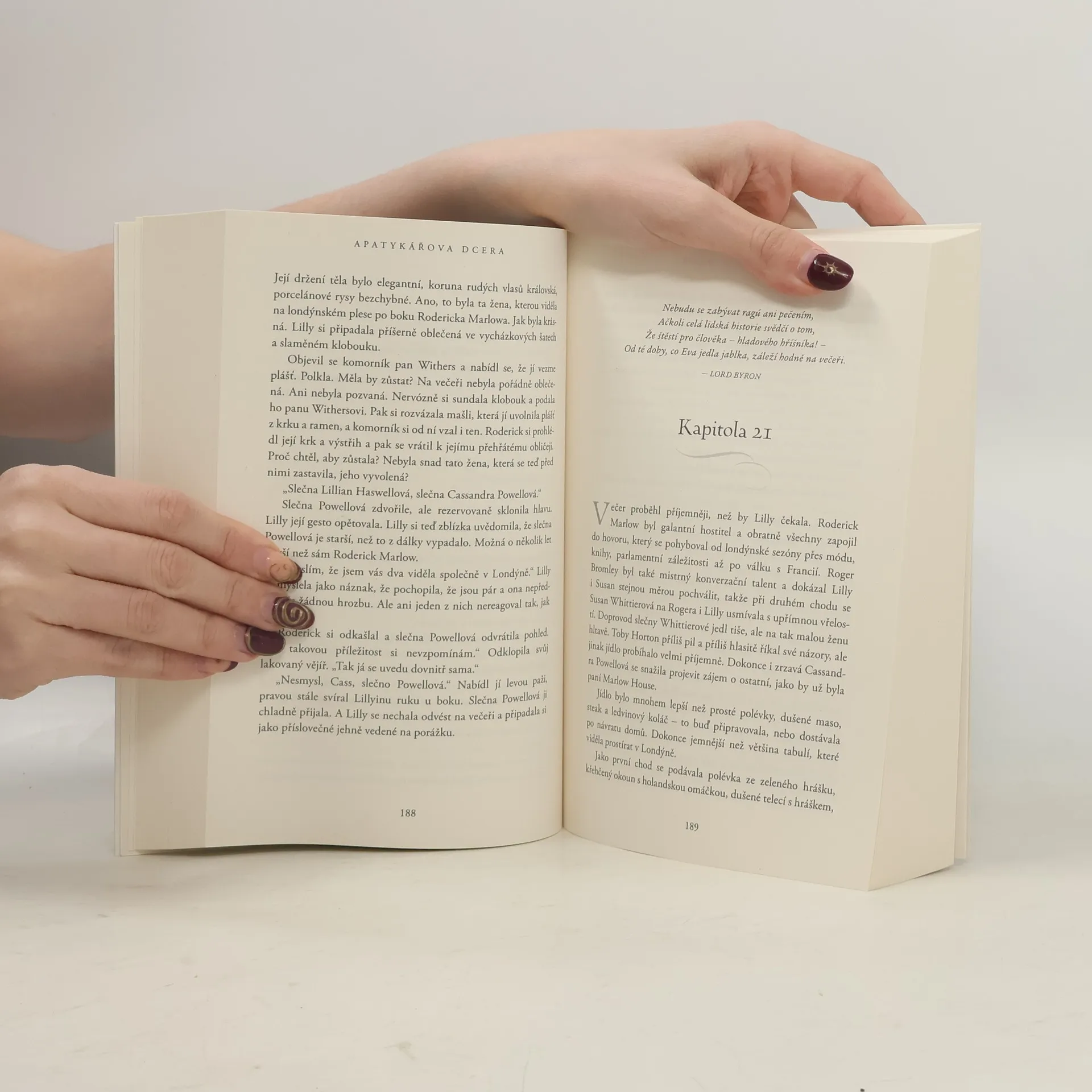 Lillian Haswellová, geniální dcera místního lékárníka sní o tom, že jednoho dne procestuje svět. Touží po větším dobrodružství a zkušenostech, než jaké jí poskytuje život v otcově obchodě a v jejich malé vesnici Bedsley Priors. Touží také poznat pravdu o zmizení své matky, o kterém si vesničané šuškají, ale otec o něm odmítá mluvit. Příležitost se naskytne, když jí vzdálená teta nabídne, že ji v Londýně vychová jako dámu. Lilly v tom vidí příležitost začít nový život. Poté co je vystavena módní společnosti a romantice - a také stopám po své matce -, je Lilly rozpolcena… Stojí před těžkou výzvou vzdát se svého báječného nezávislého života, když je povolána zpět k lůžku svého nemocného otce, aby pomohla rodině, kterou vždy milovala. Ženám je zakázáno pracovat jako lékárnice, takže aby zachránila rodinné dědictví, bude Lilly muset vystupovat tak, jako by všechny diagnózy a rozhodnutí stále dělal její otec. Navíc se na ni upírají podezřívavé oči učeného lékaře a konkurenčního lékárníka. Zatímco soupeří o významnou pozici ve vesnici, tři muži se také ucházejí o její srdce...
