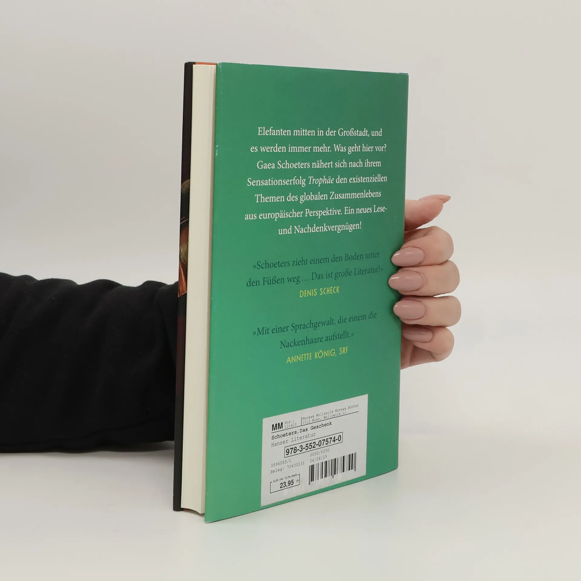 Nach »Trophäe« der neue Roman von Gaea Schoeters – über die unausweichlichen globalen Fragen aus europäischer PerspektiveElefanten mitten in der Großstadt, und es werden immer mehr. Was geht hier vor? Rasch muss der Bundeskanzler erkennen, dass die Tiere nicht aus dem Zoo entkommen, sondern ein Geschenk des Präsidenten von Botswana sind. 20 000 Elefanten hat er nach Deutschland geschickt, nachdem die deutsche Regierung ein Einfuhrverbot von Jagdtrophäen beschlossen und damit den armen Regionen Botswanas die Lebensgrundlage entzogen hat. »Ihr Europäer wollt uns vorschreiben, wie wir zu leben haben. Vielleicht solltet ihr es einmal selbst versuchen …«Gaea Schoeters nähert sich nach ihrem Sensationserfolg »Trophäe« den existenziellen Themen des globalen Zusammenlebens aus einer anderen Richtung – und mit blitzgescheitem Humor. Ein neues Lese- und Nachdenkvergnügen!