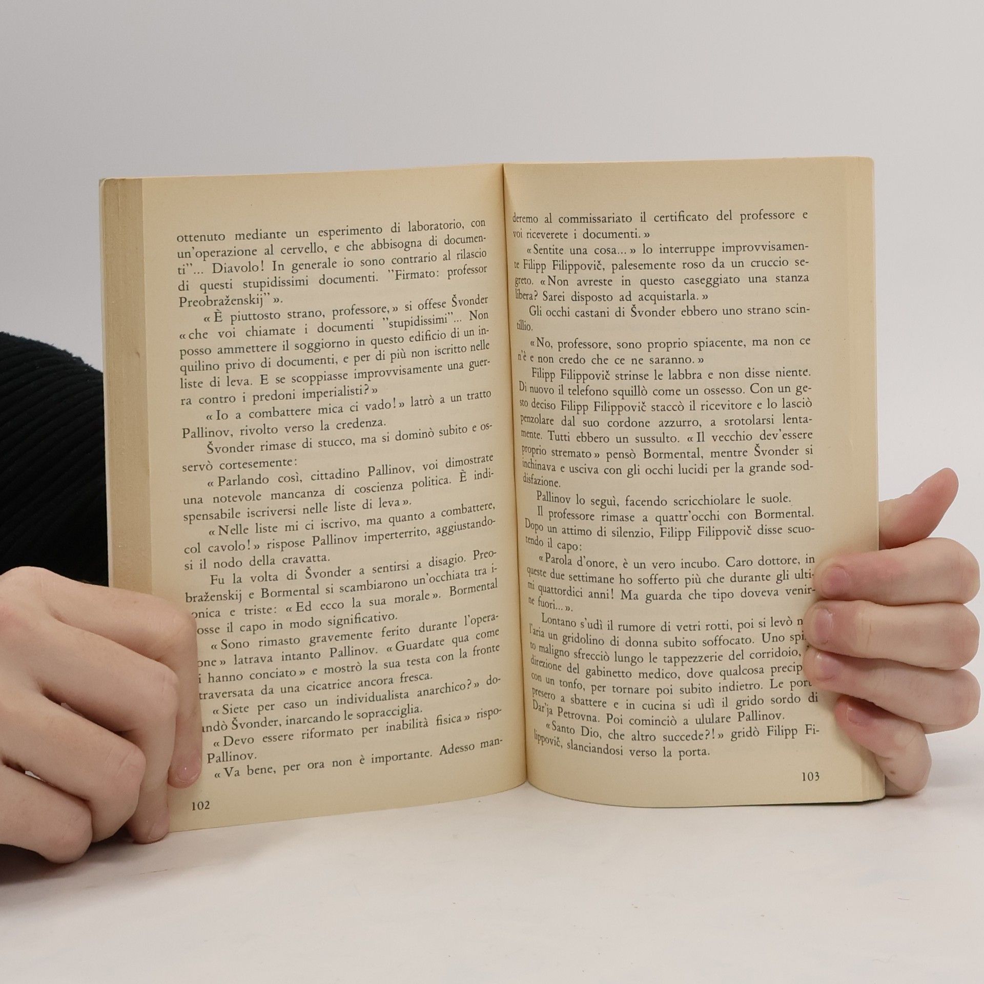 Sotto il bisturi di uno scienziato un cane viene trasformato in uomo. Ma non è la bestia a diventare più nobile, è lo spirito umano ad abbassarsi al livello canino. O forse la verità è un’altra? Forse, semplicemente, l’uomo è più crudele e insensato di qualsiasi animale? La storia del cane/uomo Pallino nella Russia della rivoluzione è allo stesso tempo un racconto vibrante e una satira spietata: un romanzo che si tiene sempre in magico equilibrio tra la narrativa e il teatro, tra la precisione scientifica e il grottesco, tra la dura realtà quotidiana dei soviet e l’assurdo.