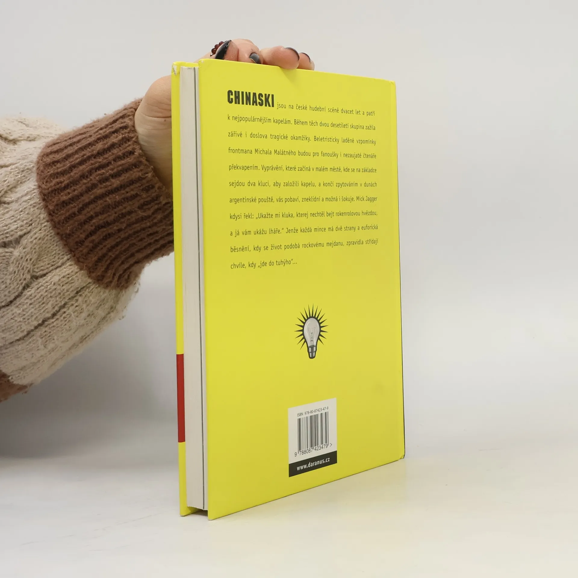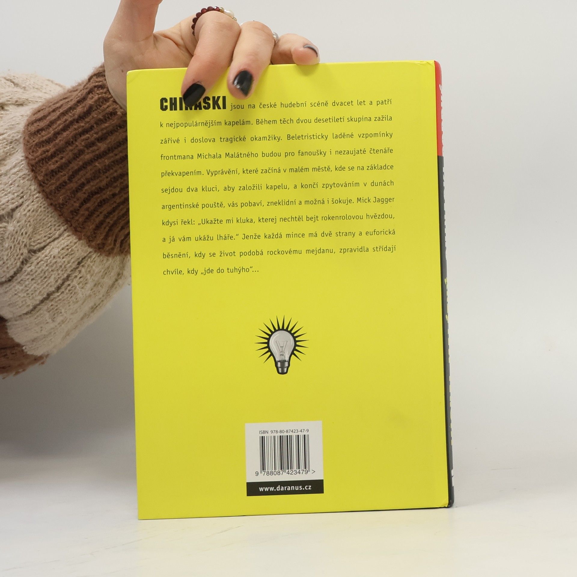 Chinaski jsou na české hudební scéně dvacet let a patří k nejpopulárnějším kapelám. Během dvou desetiletí existence skupina zažila zářivé i doslova tragické okamžiky. Beletristicky laděné vzpomínky frontmana Michala Malátného budou pro fanoušky i nezaujaté čtenáře překvapením. Vyprávění, které začíná v malém městě, kde se na základce sejdou dva kluci, aby založili kapelu, a končí zpytováním v dunách argentinské pouště, vás pobaví, zneklidní a možná i šokuje.MickJagger kdysi řekl: „Ukažte mi kluka, kterej nechtěl bejt rokenrolovou hvězdou, a já vám ukážu lháře.“ Jenže každá mince má dvě strany a euforická běsnění, kdy se život podobá rockovému mejdanu, zpravidla střídají chvíle, kdy „jde do tuhýho“... Vyprávění Michala Malátného doprovází série profilových rozhovorů Jana Hlaváče se členy kapely a lidmi z jejího okolí.
