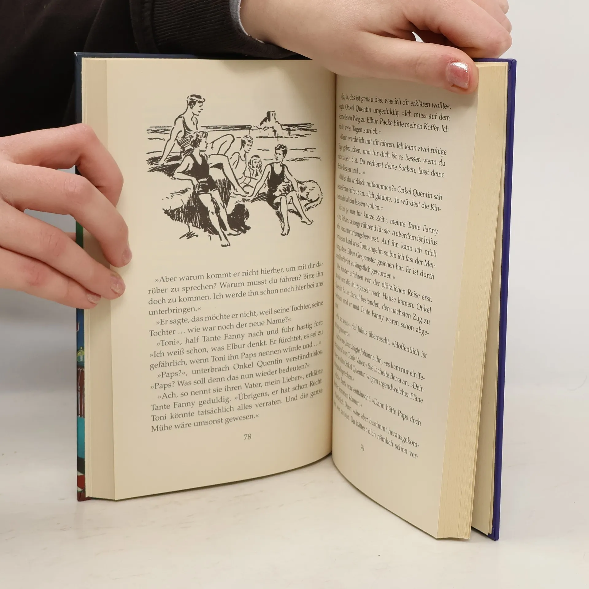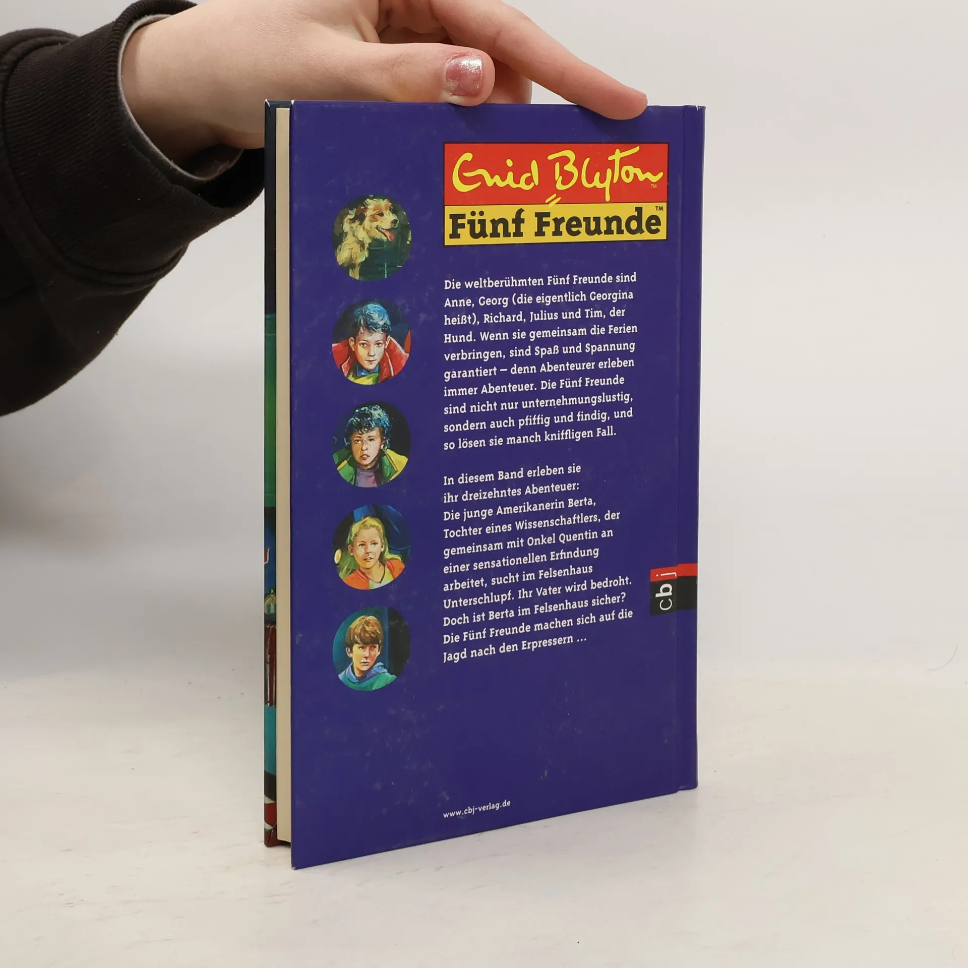 Die weltberühmten fünf Freunde: Anne, Georg (die eigentlich Georgina heißt), Richard, Julius und Tim, der Hund. Alle 21 Bände der erfolgreichsten Serie von Enid Blyton, neu bearbeitet von Elisabeth Lang. Die letzten drei Wochen der Ferien verbringen die fünf Freunde zusammen mit der jungen Amerikanerin Berta. Sie ist die Tochter eines Wissenschaftlers, der zusammen mit Onkel Quentin (Georgs Vater) an einer sensationellen Erfindung arbeitet. Um an die Pläne heranzukommen, haben sich einige Leute einen ganz üblen Trick überlegt... "Eine Kindheit ohne Enid Blyton ist seit Jahrzehnten undenkbar." Süddeutsche Zeitung