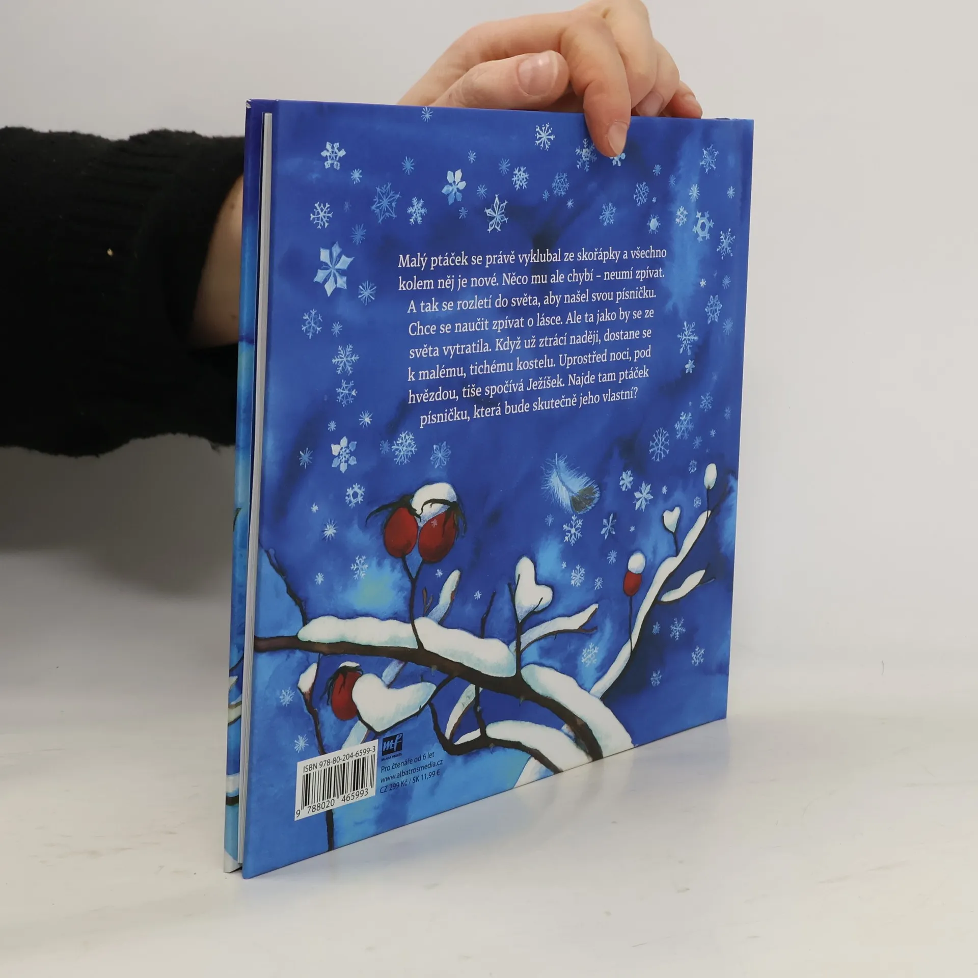 Malý ptáček se právě vyklubal ze skořápky a všechno kolem něj je nové. Ale něco mu chybí – neumí zpívat. A tak se rozletí do světa, aby našel svou písničku. Chce se naučit zpívat o lásce. Ale ta jako by se ze světa vytratila. Když už ztrácí naději, dostane se k malému, tichému kostelu. Uprostřed noci, pod hvězdou, tiše spočívá Ježíšek. Najde tam ptáček písničku, která bude skutečně jeho vlastní?