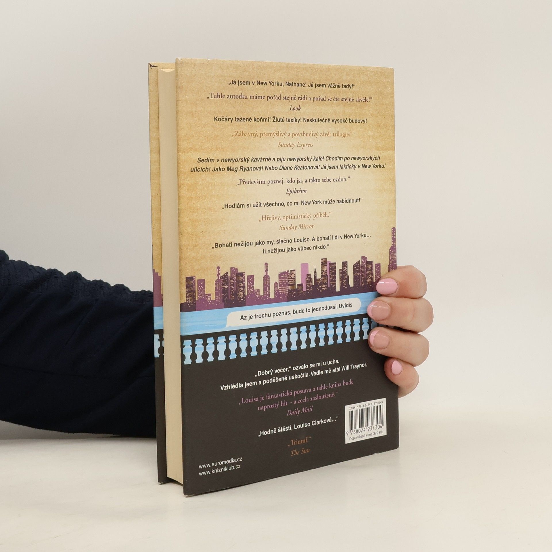 Louisa Clarková z bestellerů Než jsem tě poznala a Život po tobě se vrací v novém románu Jojo Moyesové! A hodně toho ví… Tak například ví, jak daleko je z jejího nového domova v New Yorku do Londýna, kde žije její přítel Sam. Ví také, že její nový zaměstnavatel je dobrý člověk a že před ním jeho manželka skrývá tajemství. Co ovšem Louisa ještě netuší, je to, že nová práce v novém městě jí rozhodně nezaručí idylický život, ve který tolik doufala, a že bude její vztah se Samem z obou stran podroben zkoušce ohněm. A neví také, že lidé, s nimiž se ve své nové životní etapě setká, ji možná postrčí dost nečekaným směrem…