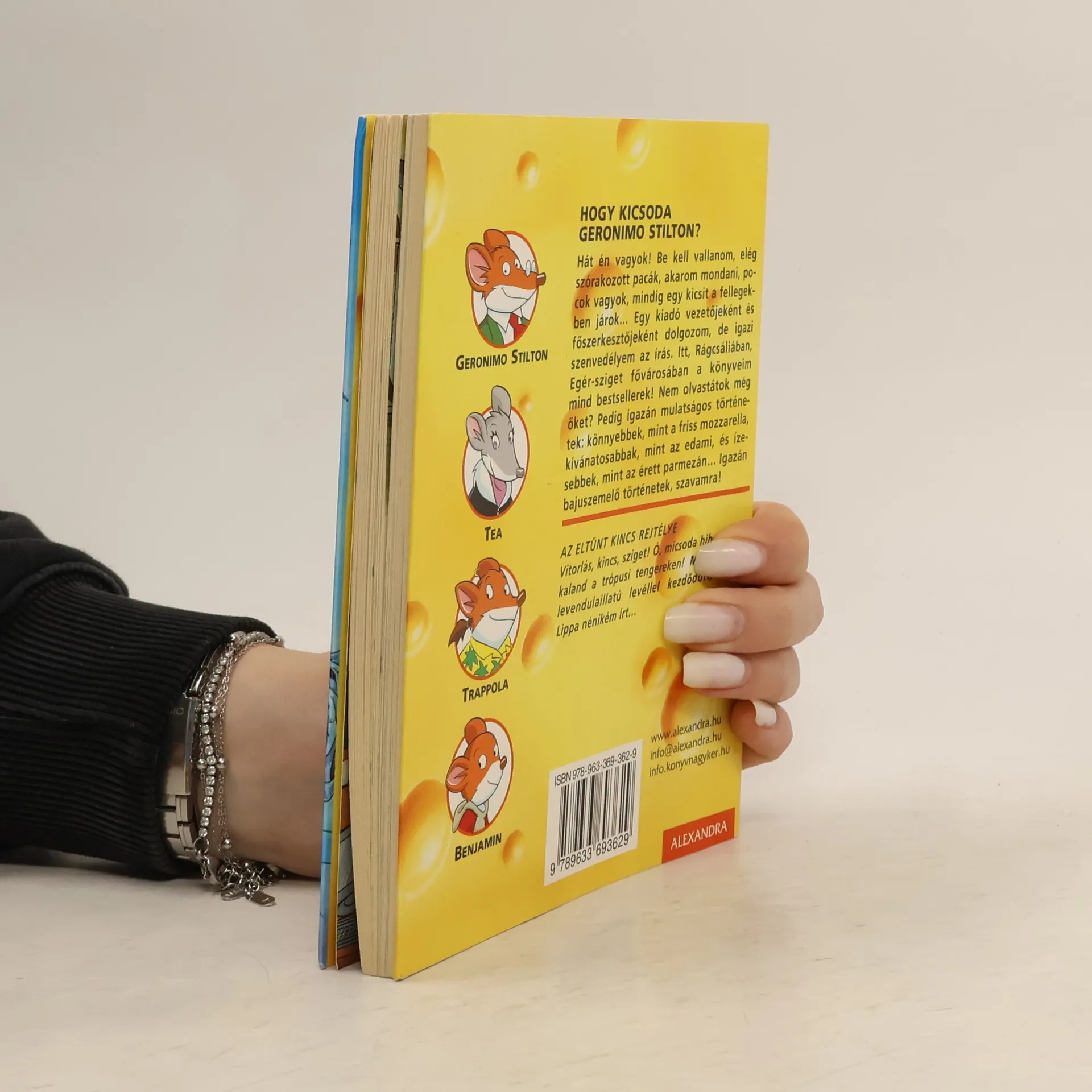Hogy kicsoda Geronimo Stilton? Hát, egy igen szórakozott pacák, pontosabban pocok, aki mindig a felhők fölött jár… Egy kiadó vezetőjeként dolgozik, de igazi szenvedélye az írás. Rágcsáliában, Egér-sziget fővárosában minden műve bombasiker. Nem olvastad még őket? Pedig igazán mulatságos történetek: könnyebbek, mint a mozzarella, kívánatosabbak, mint az edami és ízesebbek, mint az érett parmezán… Majd meglátod a színes, vidám könyvből! Vitorlás, kincs, sziget! Micsoda hihetetlen kaland a trópusi tengeren! Minden egy különös levéllel kezdődött, amit a kissé fura nagynéni írt…