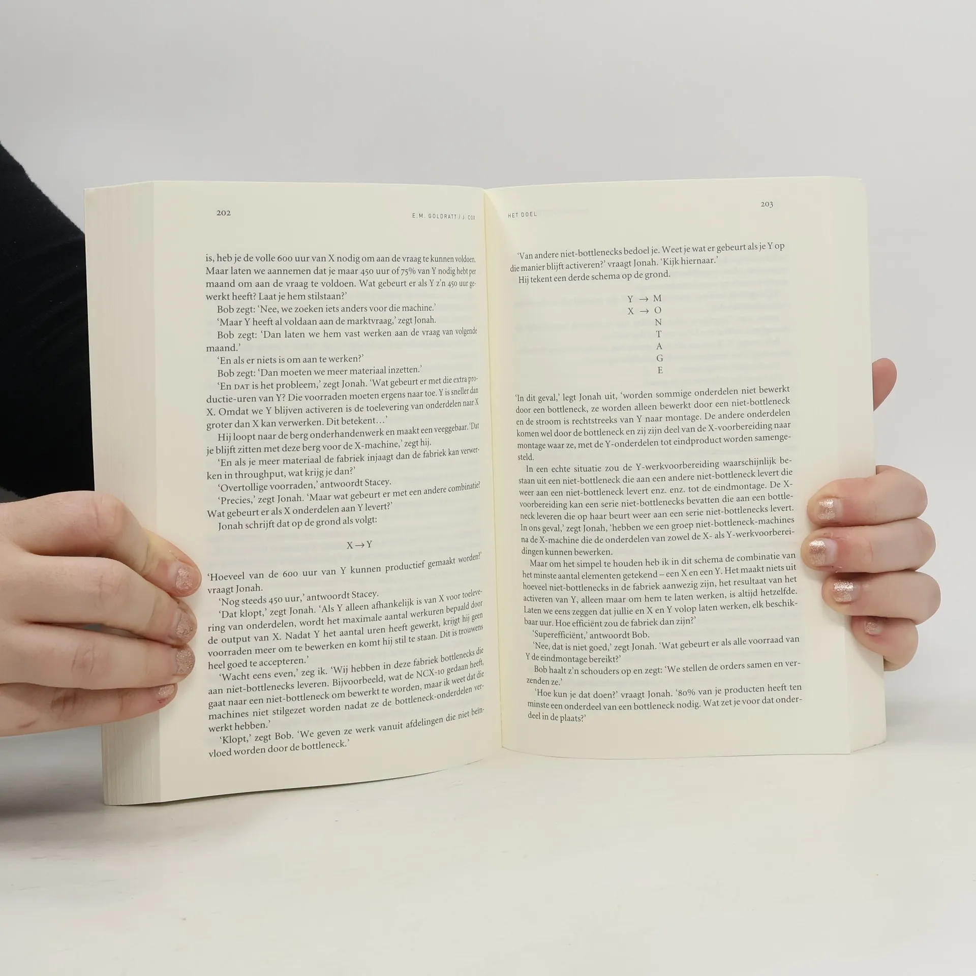 Een in romanvorm gegoten handleiding voor de verbetering van productieprocessen met behulp van het TOC-principe (Theory of Constraints).