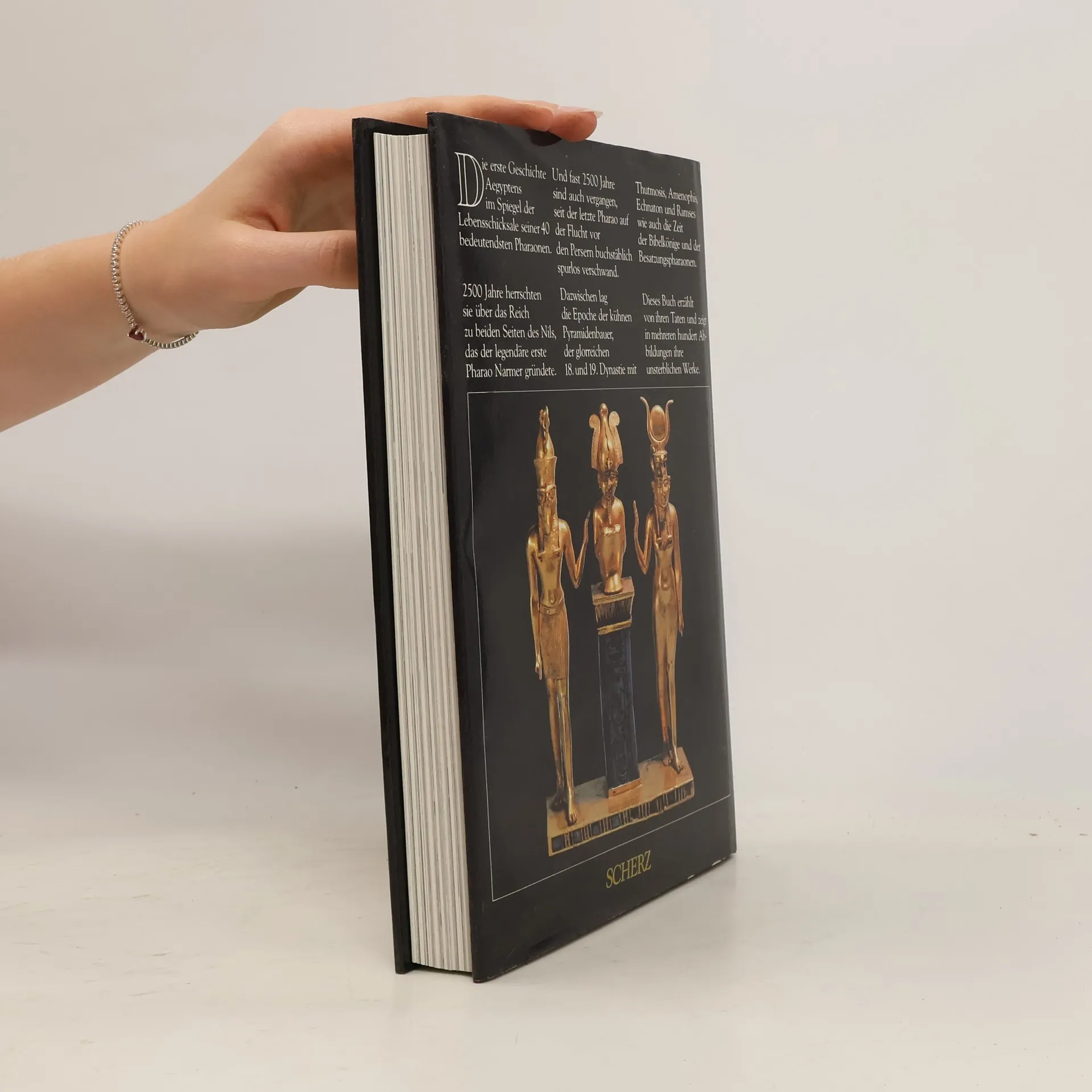 Die erste Geschichte Ägyptens im Spiegel der Lebensschicksale seiner 40 bedeutendsten Pharaonen. 2500 Jahre herrschten sie über das Reich zu beiden Seiten des Nils, das der legendäre erste Pharao Narmer gründete. Und fast 2500 Jahre sind auch vergangen, seit der letzte Pharao auf der Flucht vor den Persern buchstäblich spurlos verschwand. Dazwischen lag die Epoche der kühnen Pyramidenbauer, der glorreichen 18. und 19. Dynastie mit Thutmosis, Amenophis, Echnaton und Ramses wie auch die Zeit der Bibelkönige und der Besatzungspharaonen. Dieses Buch erzählt mit Sachkenntnis von ihren Taten und zeigt in mehreren hundert Abbildungen ihre unsterblichen Werke. (4e de couverture).