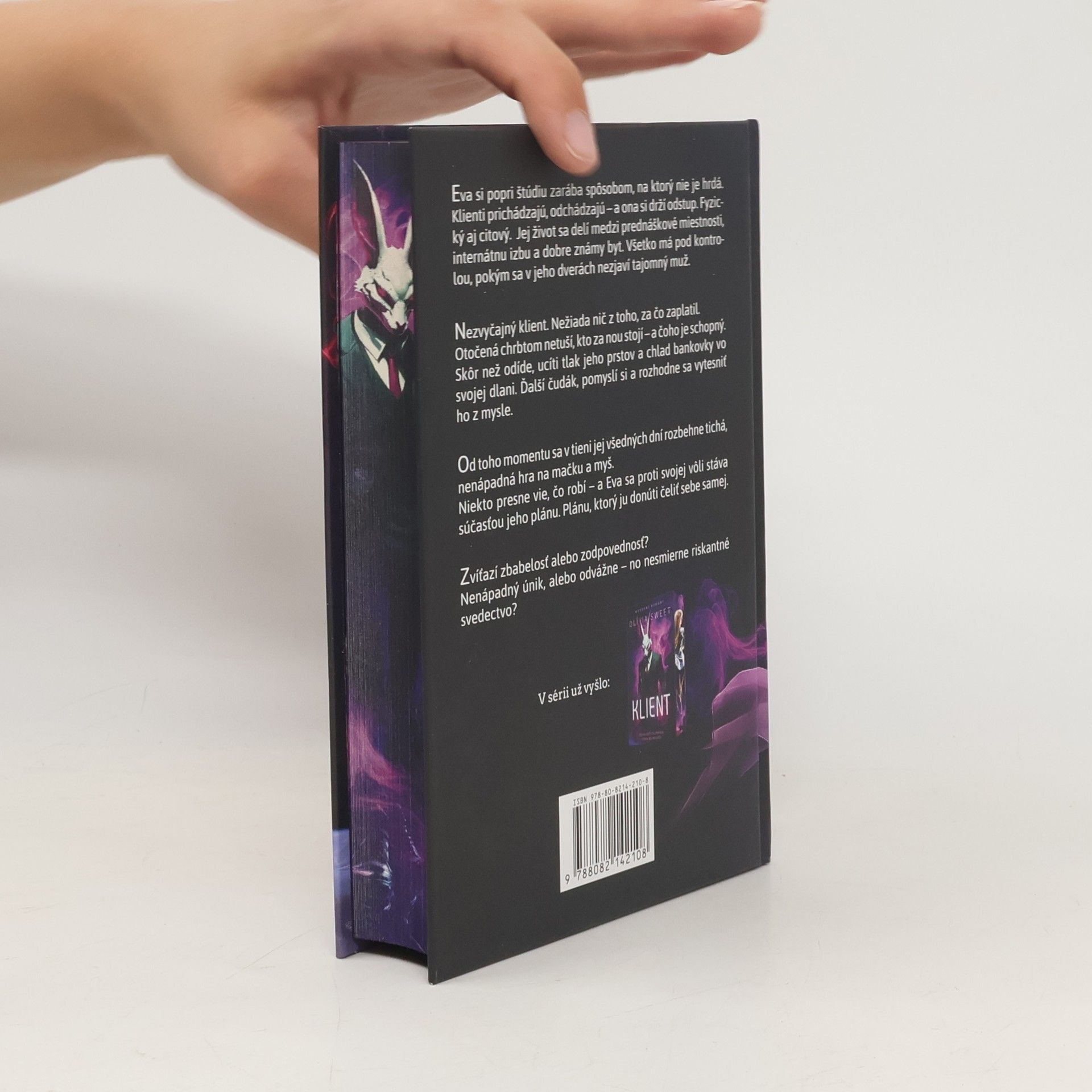 Eva si popri štúdiu zarába spôsobom, na ktorý nie je hrdá. Klienti prichádzajú, odchádzajú — a ona si drží odstup. Fyzický aj citový. Jej život sa delí medzi prednáškové miestnosti, internátnu izbu a dobre známy byt. Všetko má pod kontrolou, pokým sa v jeho dverách nezjaví tajomný muž. Nezvyčajný klient.Nežiada nič z toho, za čo zaplatil.Otočená chrbtom netuší, kto za ňou stojí – a čoho je schopný. Skôr než odíde, ucíti tlak jeho prstov a chlad bankovky vo svojej dlani. Ďalší čudák, pomyslí si a rozhodne sa vytesniť ho z mysle.Od toho momentu sa v tieni jej všedných dní rozbehne tichá, nenápadná hra na mačku a myš.Niekto presne vie, čo robí – a Eva sa proti svojej vôli stáva súčasťou jeho plánu. Plánu, ktorý ju donúti čeliť sebe samej.Zvíťazí zbabelosť alebo zodpovednosť?Nenápadný únik, alebo odvážne – no nesmierne riskantné svedectvo?