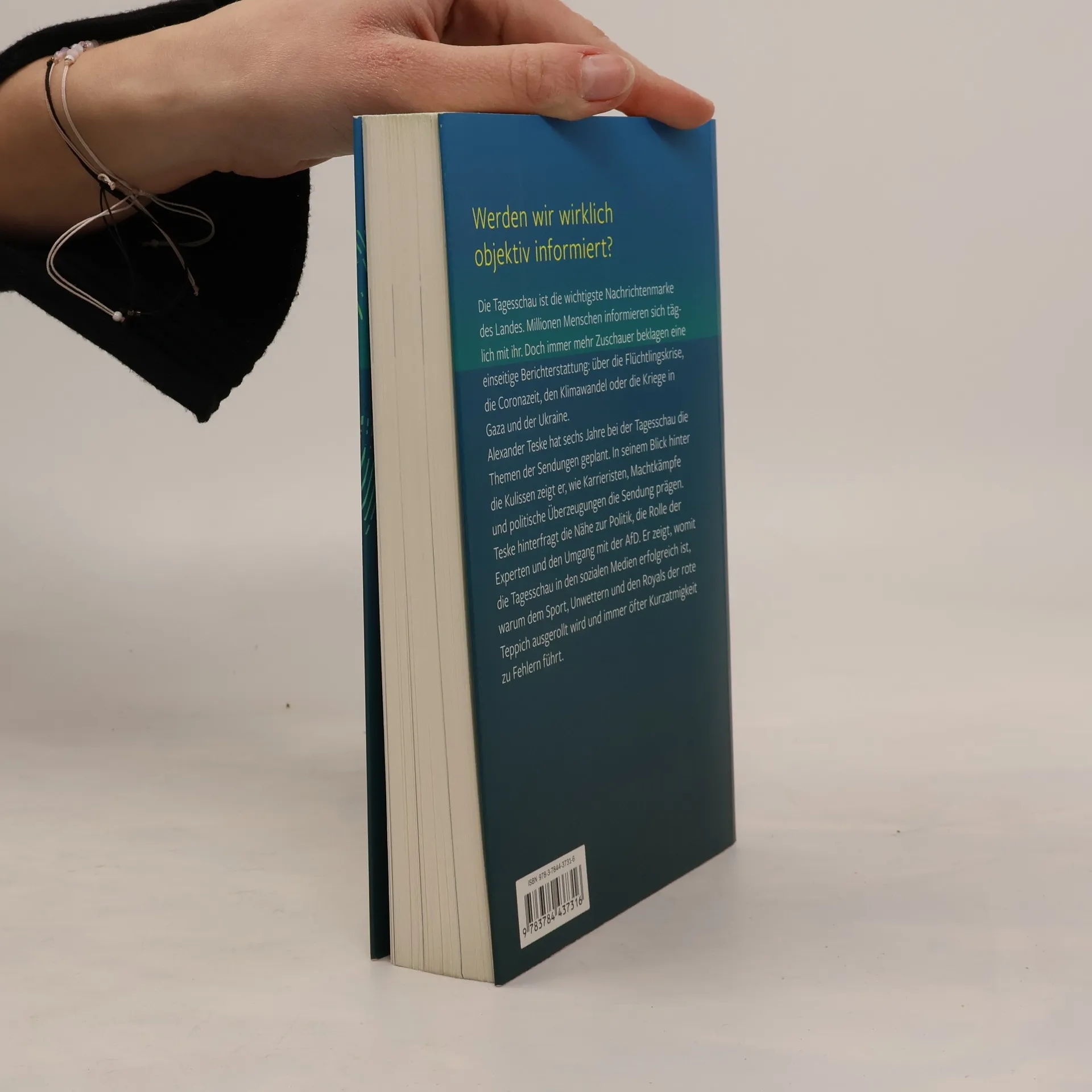 Die Tagesschau ist die wichtigste Nachrichtenmarke des Landes. Millionen Menschen informieren sich täglich bei ihr. Doch immer mehr Zuschauer beklagen eine einseitige Berichterstattung: Über die Flüchtlingskrise, die Coronazeit, den Klimawandel oder die Kriege in Gaza und der Ukraine. Alexander Teske hat sechs Jahre bei der Tagesschau die Themen der Sendungen geplant. In seinem Blick hinter die Kulissen zeigt er wie Karrieristen, Machtkämpfe und politische Überzeugungen die Sendung prägen. Teske hinterfragt die Nähe zur Politik, die Rolle der Experten und den Umgang mit der AfD. Er zeigt, womit die Tagesschau in den sozialen Medien erfolgreich ist, warum dem Sport, Unwettern und den Royals der rote Teppich ausgerollt wird und immer öfter Kurzatmigkeit zu Fehlern führt.