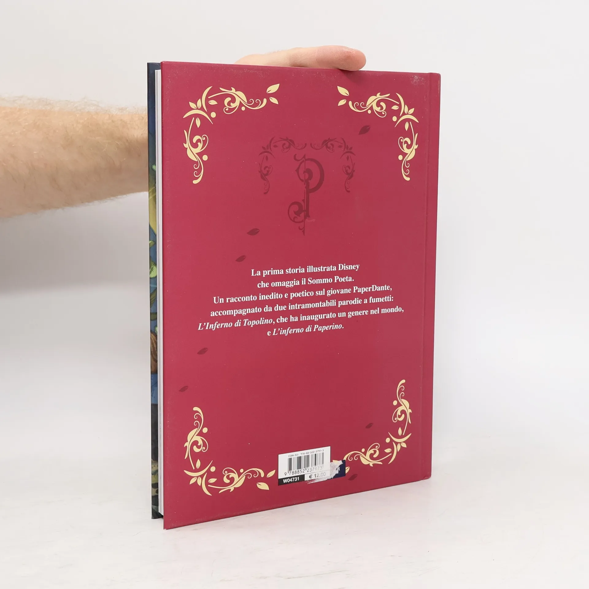 In questo volume si celebra un’opera unica: la prima storia illustrata Disney ispirata a Dante Alighieri e realizzata da tre artisti geniali, lo sceneggiatore Augusto Macchetto, la disegnatrice Giada Perissinotto e il colorista Andrea Cagol, unita alle parodie storiche della Divina Commedia. Il volume è composto dalla storia illustrata e dalle parodie L’Inferno di Topolino di Guido Martina e Angelo Bioletto e L’Inferno di Paperino di Giulio Chierchini. Un libro che omaggia il sommo poeta.