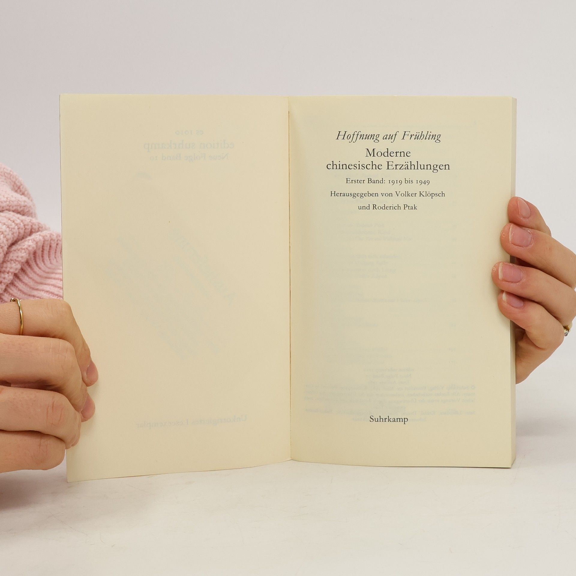 Hoffnung auf Frühling, Moderne chinesische Erzählungen, Volker Klöpsch