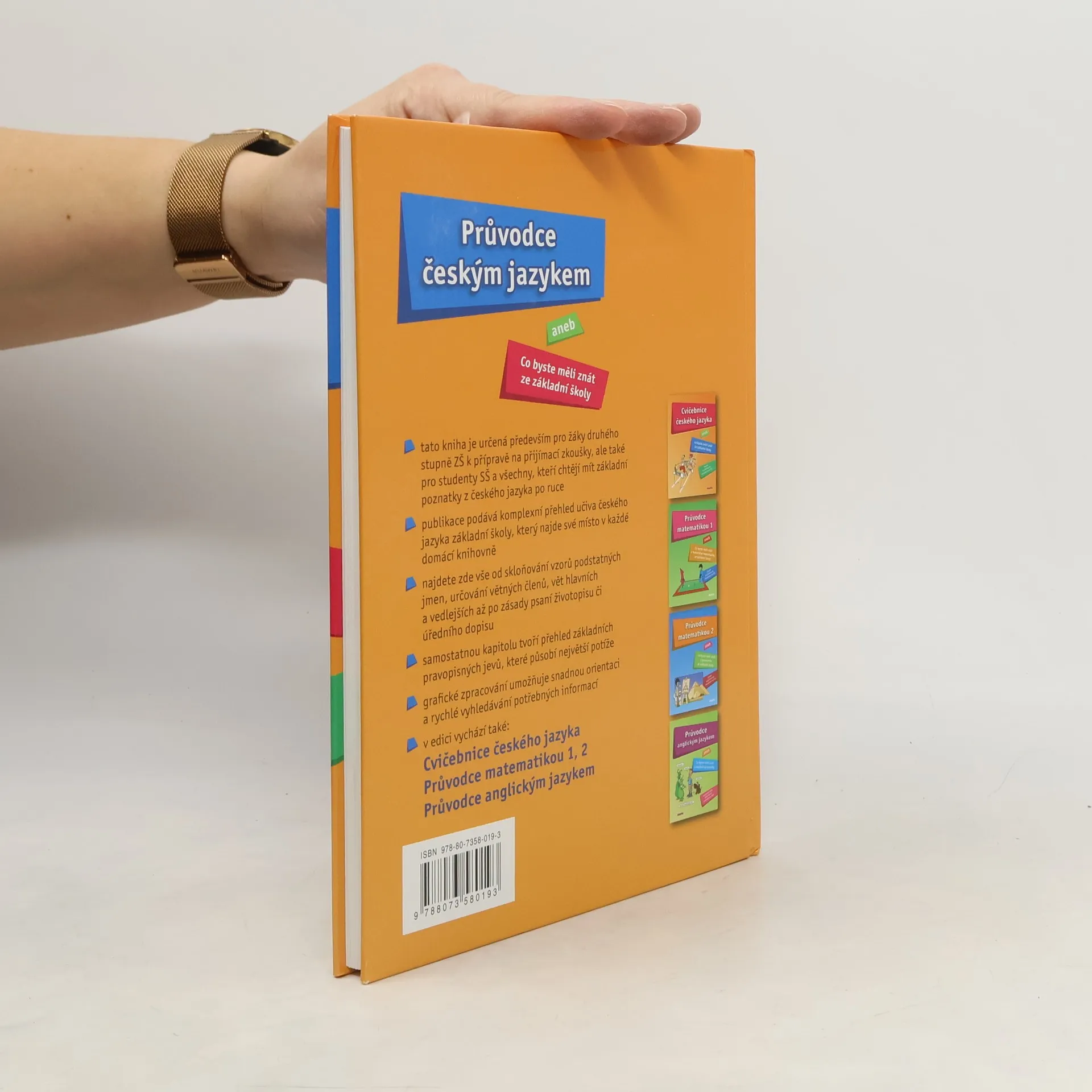 Publikace je určena nejen žákům základních škol a studentům prvních ročníků středních škol, ale všem, kteří si chtějí osvěžit základní poznatky z českého jazyka. Barevná poutavá kniha s atraktivní grafickou úpravou typu rodinná encyklopedie. Publikace je určena nejen žákům základních škol a studentům prvních ročníků středních škol, ale všem, kteří si chtějí osvěžit základní poznatky z českého jazyka. Najdete zde vše od skloňování vzorů podstatných jmen, určování větných členů, vět hlavních a vedlejších až po zásady psaní životopisu či úředního dopisu. Kniha je přehledně členěna do 8 kapitol, které jsou dále rozvedeny do dílčích podkapitol. V poslední 8. kapitole je obsažen přehled základních pravopisných jevů, které působí největší potíže. Grafickým odlišením stěžejního textu od doplňujících informací je zajištěna snadná orientace rychlé vyhledávání potřebných informací. Text doprovází průvodní kreslená postava, která se vyjadřuje k různým mluvnickým problémům a svými promluvami je odlehčuje.