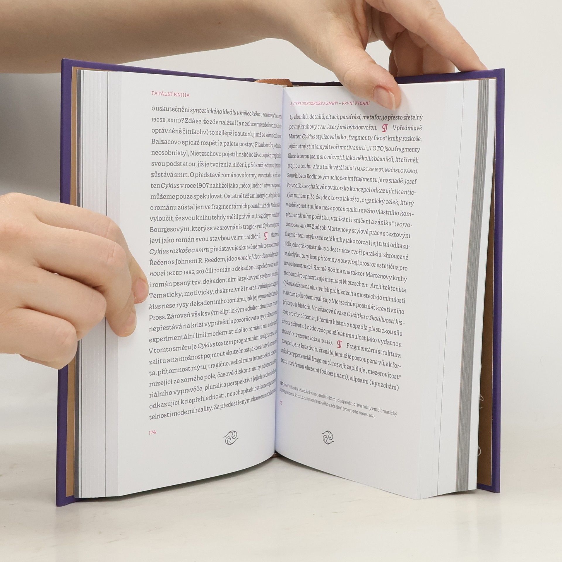 Umělecká tvorba Miloše Martena (1883–1917) bývá literární historií vykládána pouze jako doplněk jeho kritické a esejistické činnosti. Tato kniha od hierarchizující perspektivy odhlíží a zaměřuje se na autorův prozaický Cyklus rozkoše a smrti v jeho dvou verzích: prvotní (1907) a výsledné (1925), jejíž podobu ovlivnila autorova přímá válečná zkušenost. Stylizovaná literárnost, design knihy i tematizace diskurzů o degeneraci lidstva a nákaze uměním činí z první verze dekadentní poisonous book, jejíž četba je inscenována jako fatální iniciace do světa „mimo dobro a zlo“. Publikace na základě archivního výzkumu mapuje okolnosti Martenova přepisu díla a současně zprostředkovává osobitou zpověď intelektuála v soukolí dějin, který utvářel svou vlastní identitu mezi „Západem“ a „Východem“ a mezi jejich texty i jazyky.