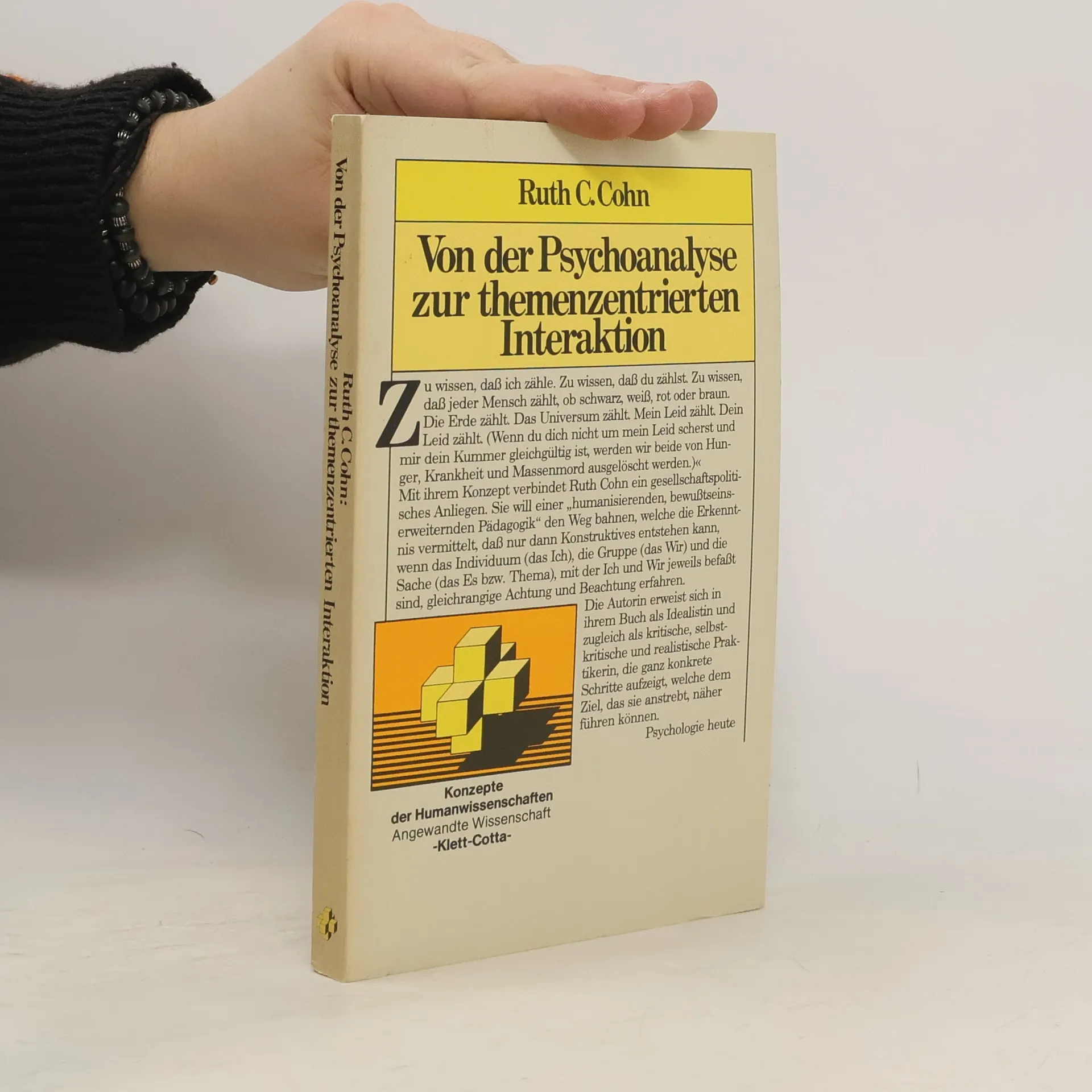 'Mit ihrem Konzept verbindet Ruth Cohn ein gesellschaftspolitisches Anliegen. Sie will einer 'humanisierenden, bewussseinserweiternden Pädagogik' den Weg bahnen, welche die Erkenntnis vermittelt, dass nur dann Konstruktives entstehen kann, wenn das Individuum (das Ich), die Gruppe (das Wir) und die Sache (das Es bzw. Thema), mit der Ich und Wir jeweils befasst sind, gleichrangige Achtung und Beachtung erfahren. Die Autorin erweist sich in ihrem Buch als Idealistin und zugleich als kritische, selbtskritische und realistische Praktikerin, die ganz konkrete Schritte aufzeigt, welche dem Ziel, das sie anstrebt, näher führen können.' (Verlagstext).