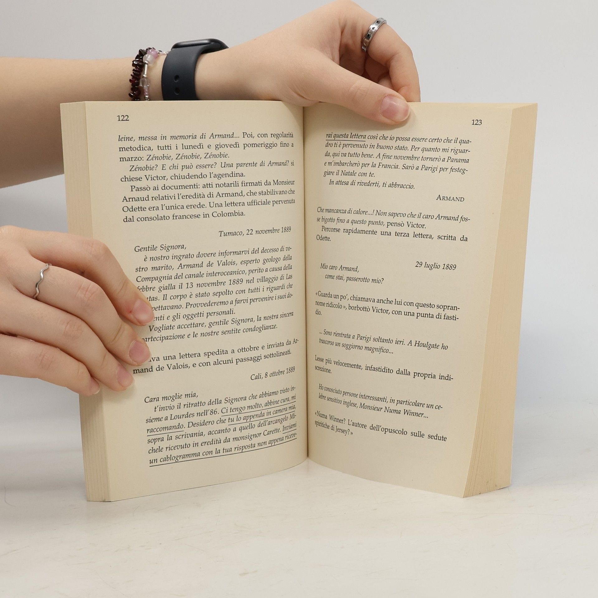 Parigi, 1890. Victor Legris è abituato a ogni sorta di avventori nella sua libreria in rue des Saints-Pères, ma non si aspetta certo l'irruzione di Denise, la domestica della sua ex amante Odette de Valois. La ragazza è sconvolta: aveva un appuntamento con la sua padrona al cimitero del Père-Lachaise, presso la tomba del marito della donna, ma giunta presso la cappella di famiglia, non vi ha trovato altro che un foulard di seta. E anche a casa non c'è traccia di Odette, e vi aleggia un'atmosfera inquietante... Da qualche tempo, infatti, Madame de Valois coltiva un profondo interesse per lo spiritismo, l'ultima moda dei salotti parigini. Ma Victor, pragmatico per natura, si convince che dietro la scomparsa di Odette ci sia qualcosa di ben più concreto di un fantasma e si lancia quindi in una nuova indagine, che si rivelerà sempre più pericolosa. Tra contesse altere ed eruditi polverosi, artisti in bolletta e veggenti smaliziati, prende così corpo un giallo di raffinata eleganza, in cui Claude Izner ci riporta nelle strade e nei vicoli di Parigi, tracciando con nostalgia il ritratto di una città strabiliante, in bilico tra progresso e superstizione, attraversata però da "un'aria nuova, un'aria di libertà".