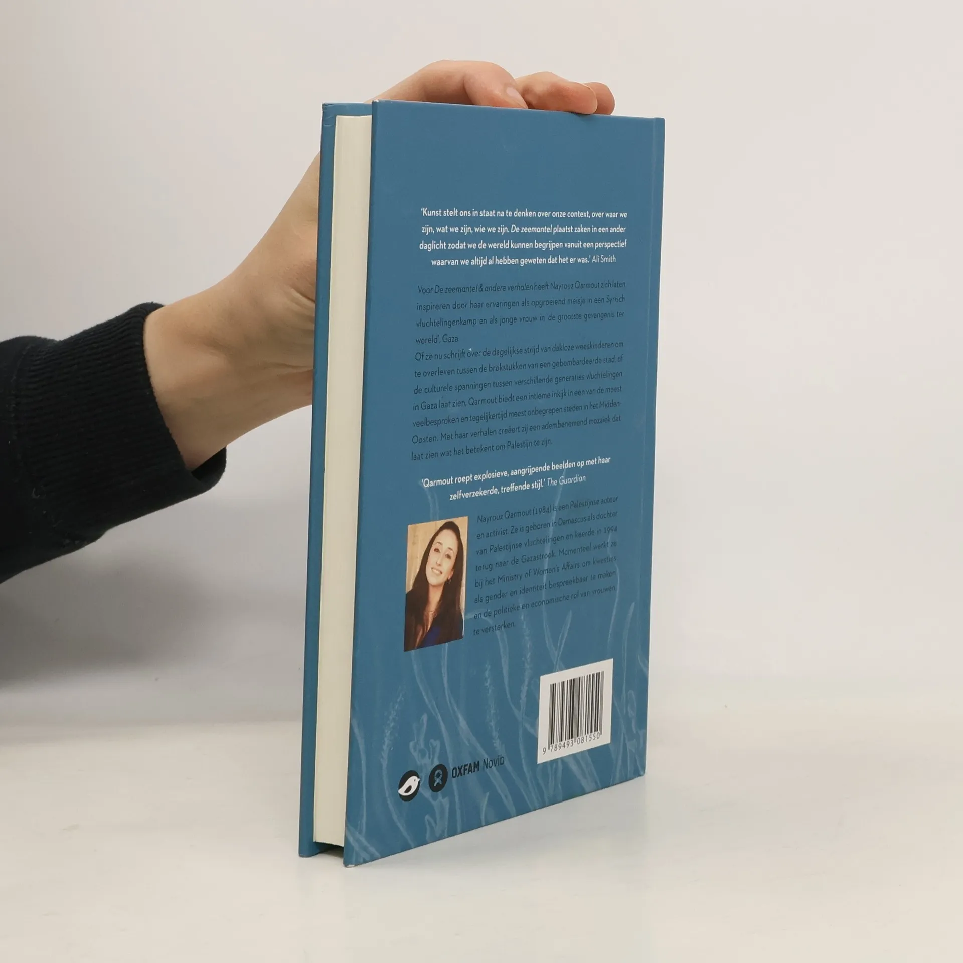 Voor De zeemantel & andere verhalen heeft Nayrouz Qarmout zich laten inspireren door haar eigen ervaringen als opgroeiend meisje in een Syrisch vluchtelingenkamp en als jonge vrouw in ‘de grootste gevangenis ter wereld’, Gaza. Met haar verhalen creëert zij een adembenemend mozaïek dat laat zien wat het betekent om Palestijn te zijn. Of ze nu schrijft over de dagelijkse strijd van dakloze weeskinderen om te overleven tussen de brokstukken van een gebombardeerde stad, of de culturele spanningen tussen verschillende generaties vluchtelingen in Gaza laat zien, Qarmout biedt een intieme inkijk in een van de meest veelbesproken en tegelijkertijd meest onbegrepen steden in het Midden-Oosten. Hiermee geeft ze ons een lokaal perspectief op een globaal verhaal: de zoektocht naar de eigen wortels, naar de meest geliefde plek van allemaal: een thuis.